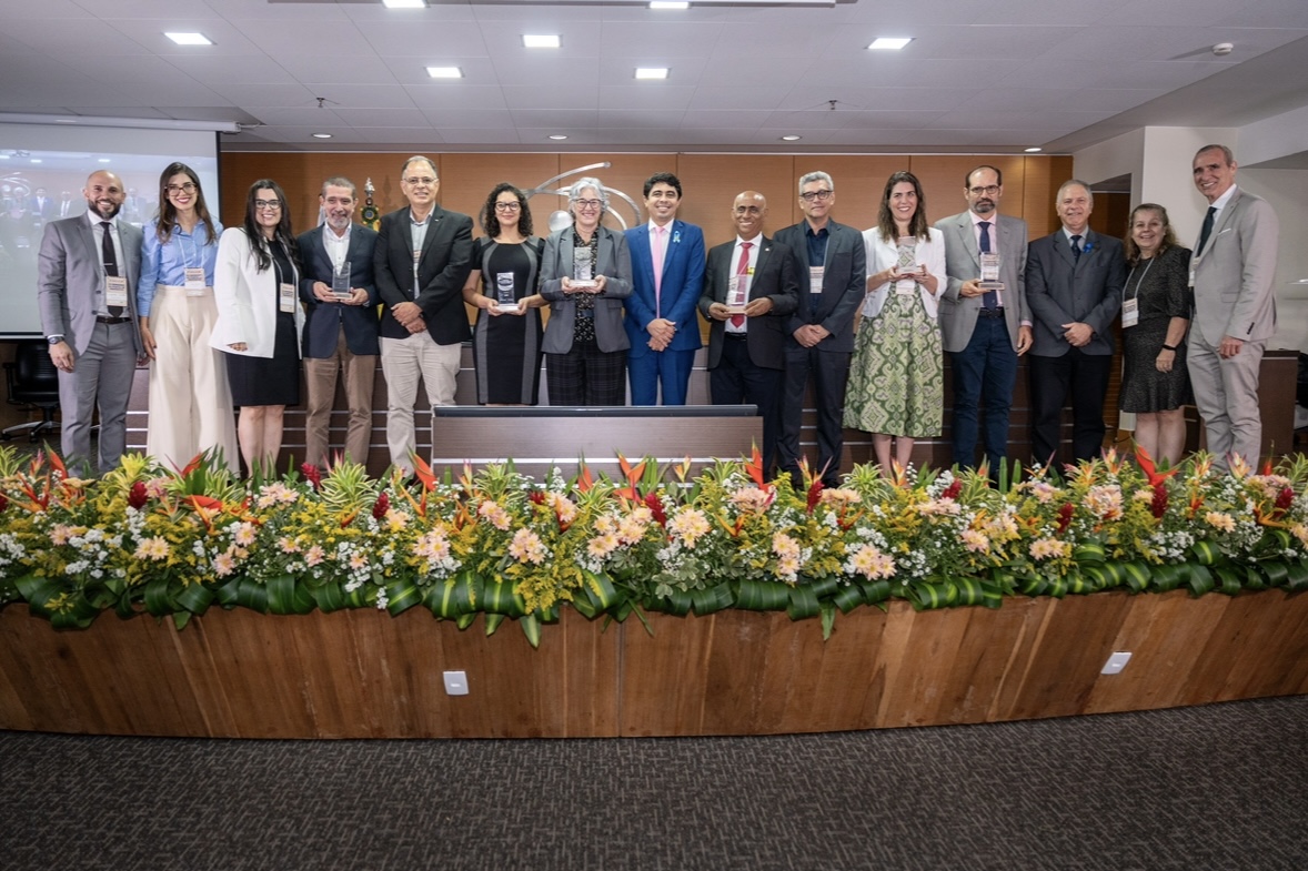 Representantes da CAPES e de instituições parceiras junto aos premiados (Crédito: Julia Prado - CGCOM/CAPES)