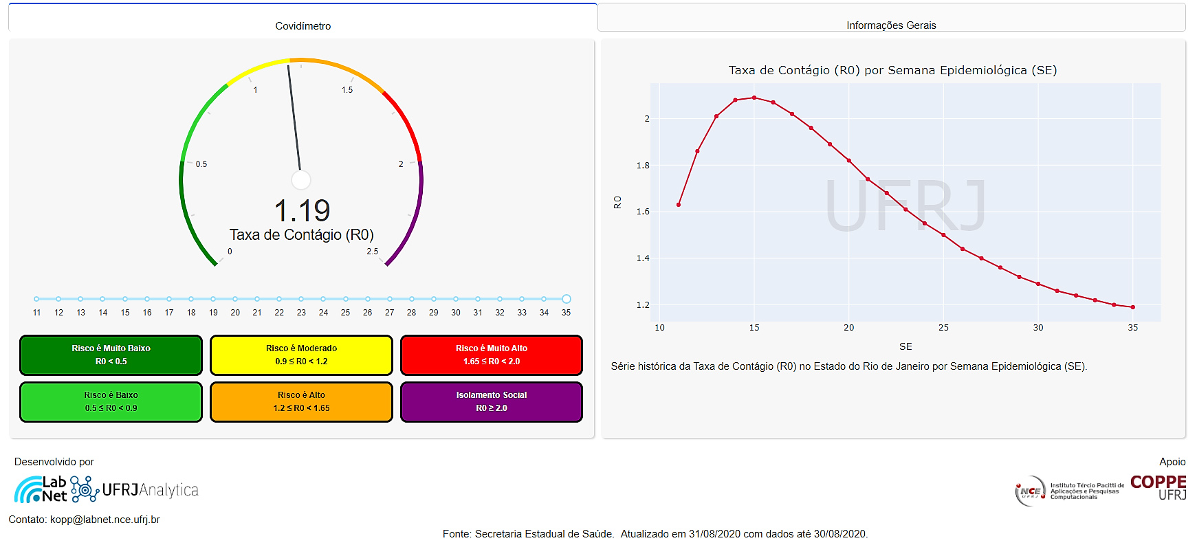 O covidímetro mostra o desenvolvimento e risco de contágio pela COVID-19 no RJ (Foto: Cláudia Guerreiro - CCS/CAPES)