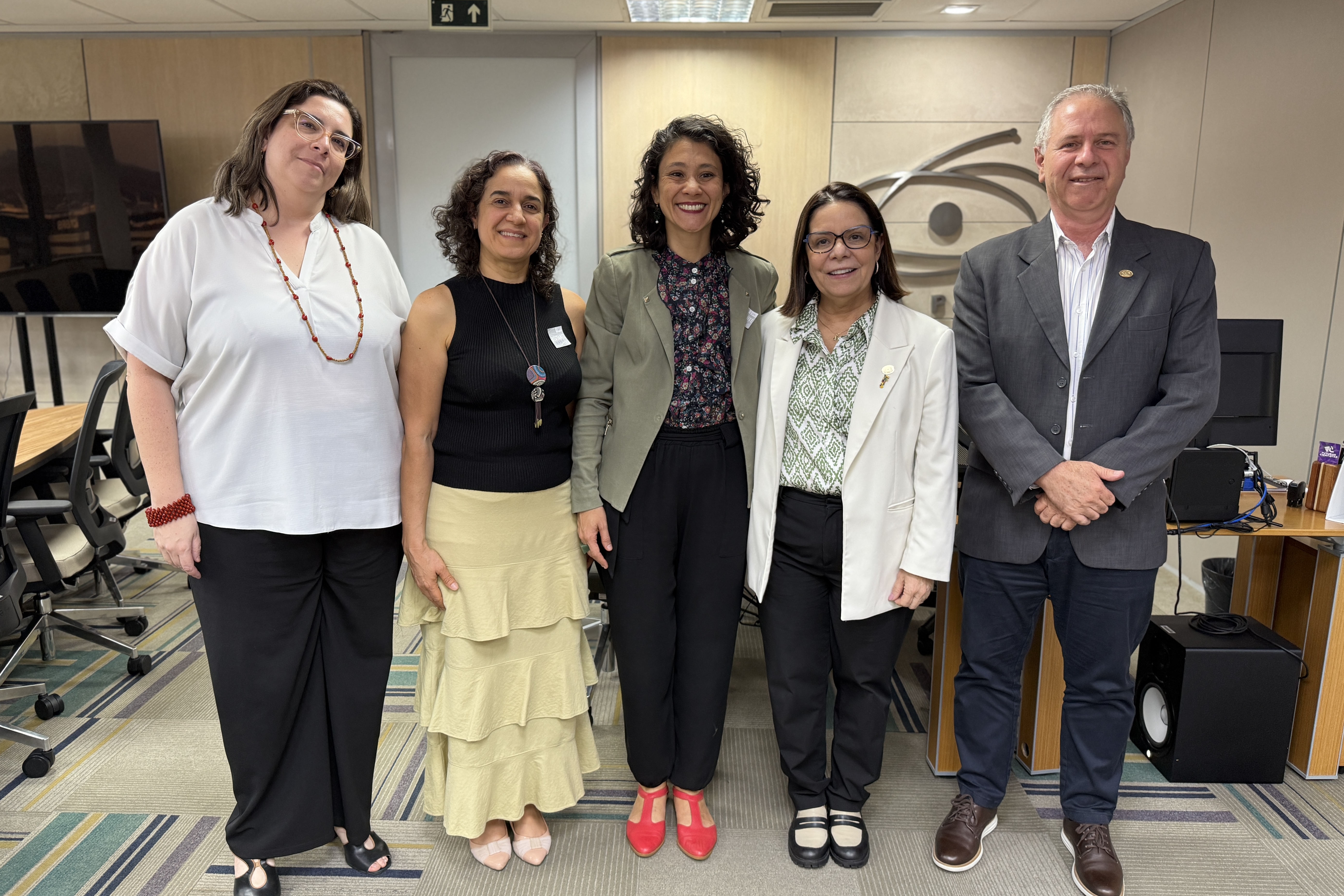 Imagem: Equipes da CAPES e da Senad reunidas na sede da Coordenação, em Brasília (Julia Prado - CGCOM/CAPES)