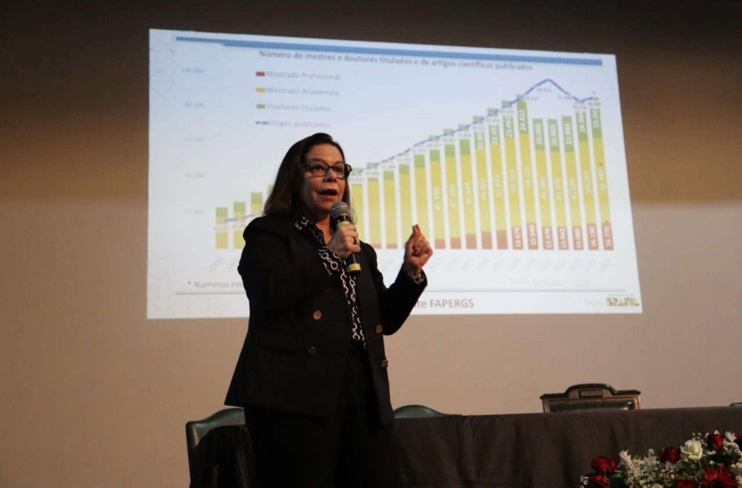 Imagem: Denise Pires de Carvalho na 23ª Semana de Integração Acadêmica da Unirio (Comso/UNIRIO)