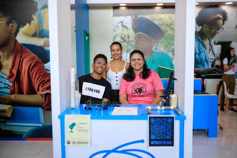 Imagem: Thayna Araújo (centro) e Safira Áthena (direita) entrevistam mulheres cientistas em podcast (Naiara Demarco - CGCOM/CAPES)
