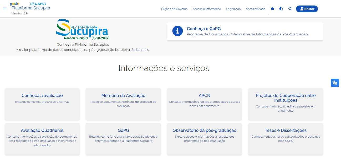 Imagem: Print da tela inicial da Plataforma Sucupira (Divulgação)