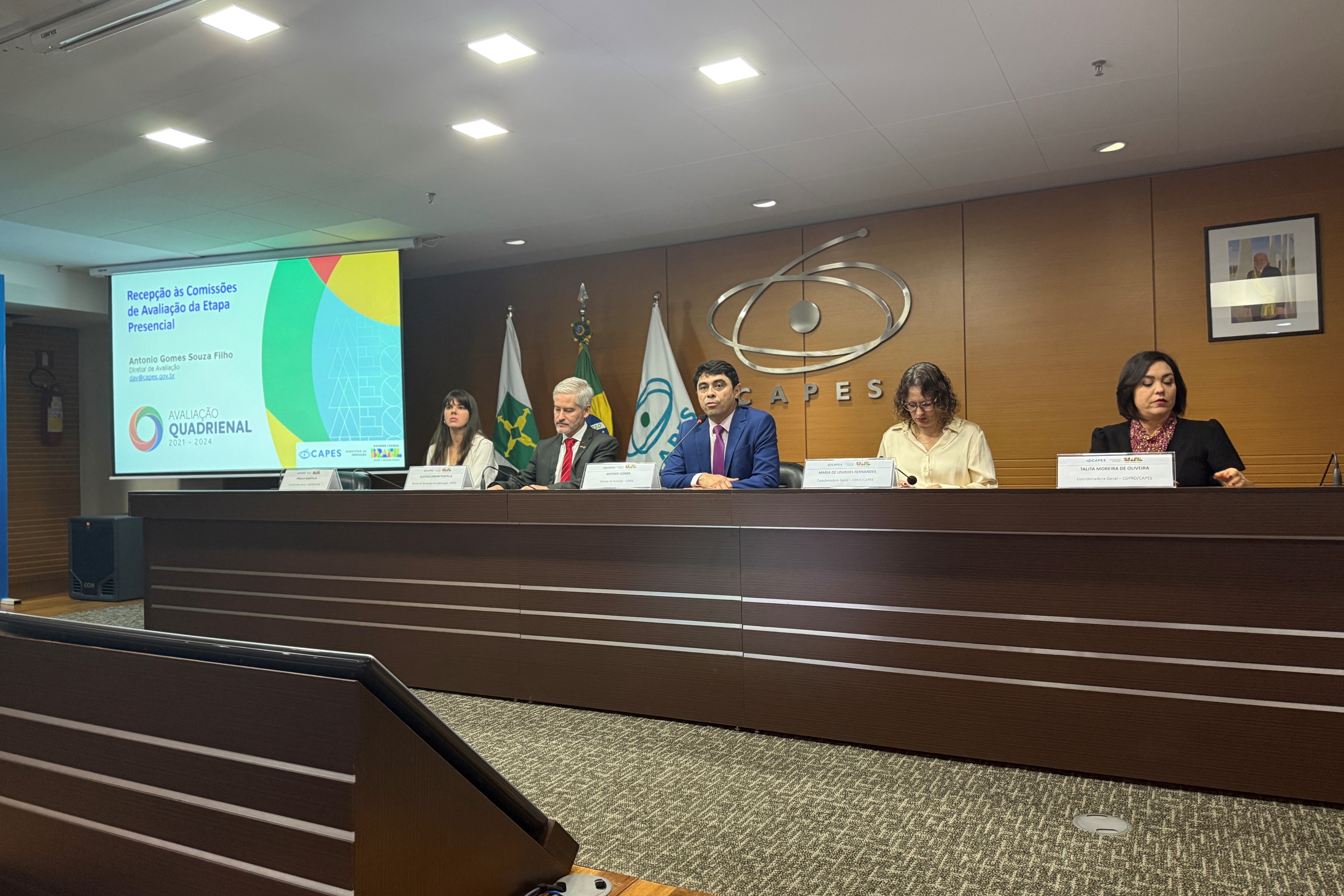 Imagem: Mesa durante os encontros (Júlia Prado - CGCOM/CAPES)