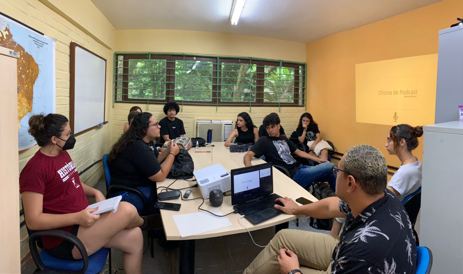 Imagem: Gravação do Pibid História Podcast (Maria Emília Vasconcellos)