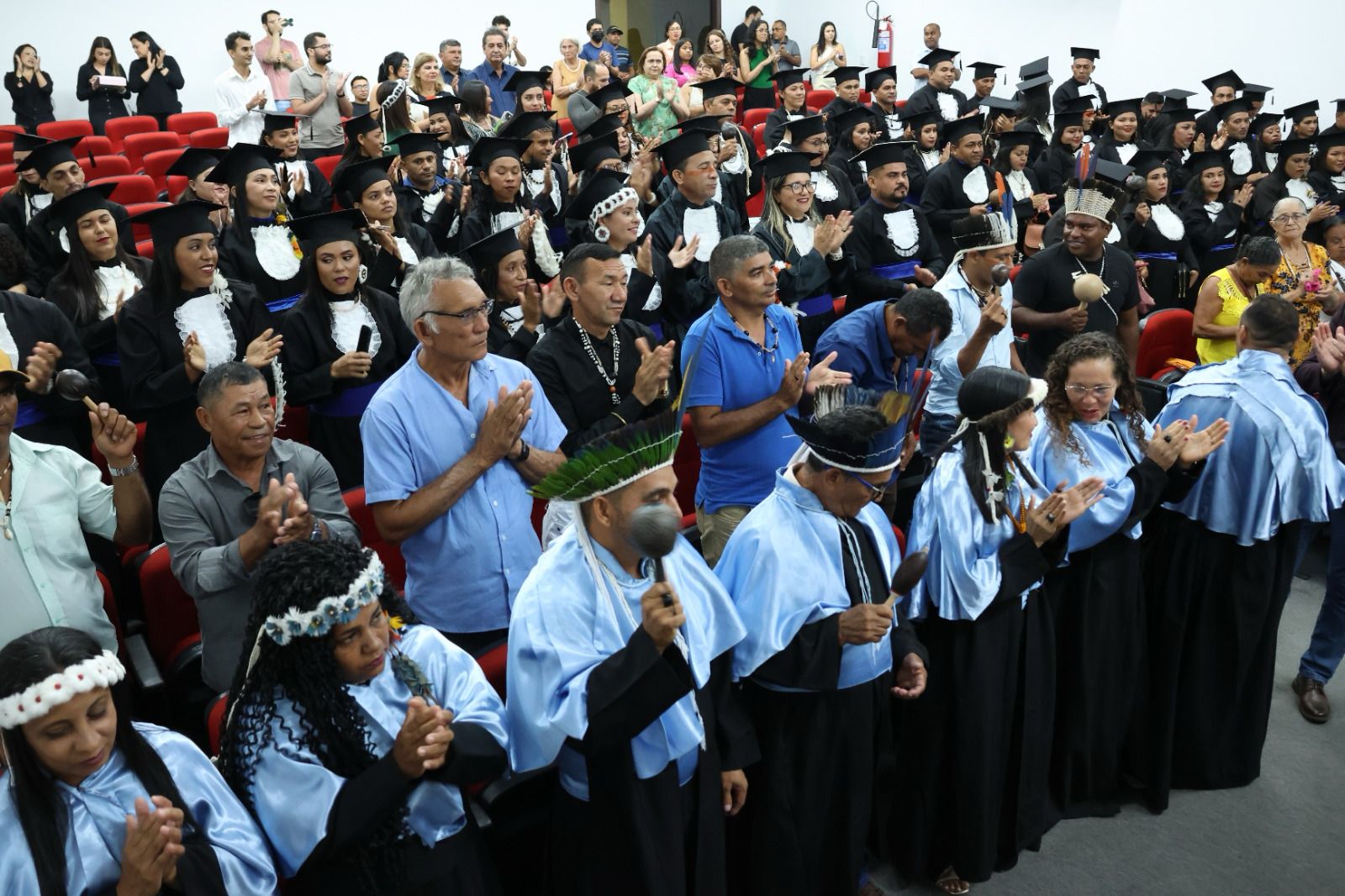 Imagem: Professores que concluíram o curso Cuiambá Pedagogia Intercultural Indígena Magistério Tremembé (Foto: divulgação).