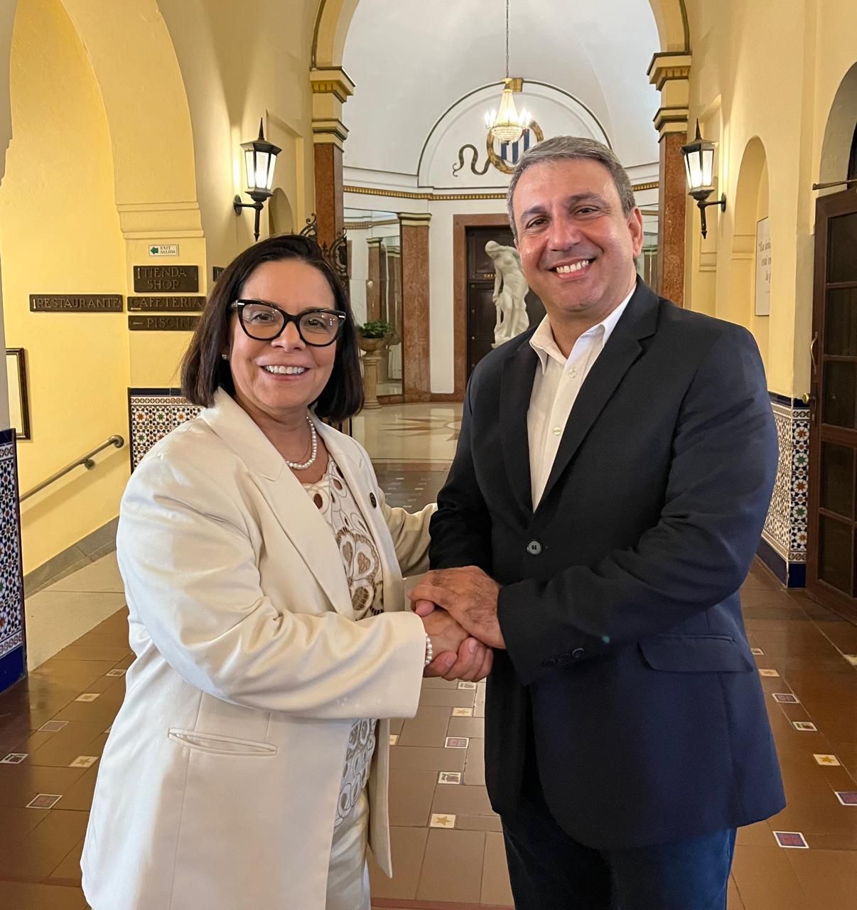 Imagem: Denise Pires de Carvalho, presidente da CAPES, e o ministro de Educação Superior da país, Walter Baluja García (Divulgação)