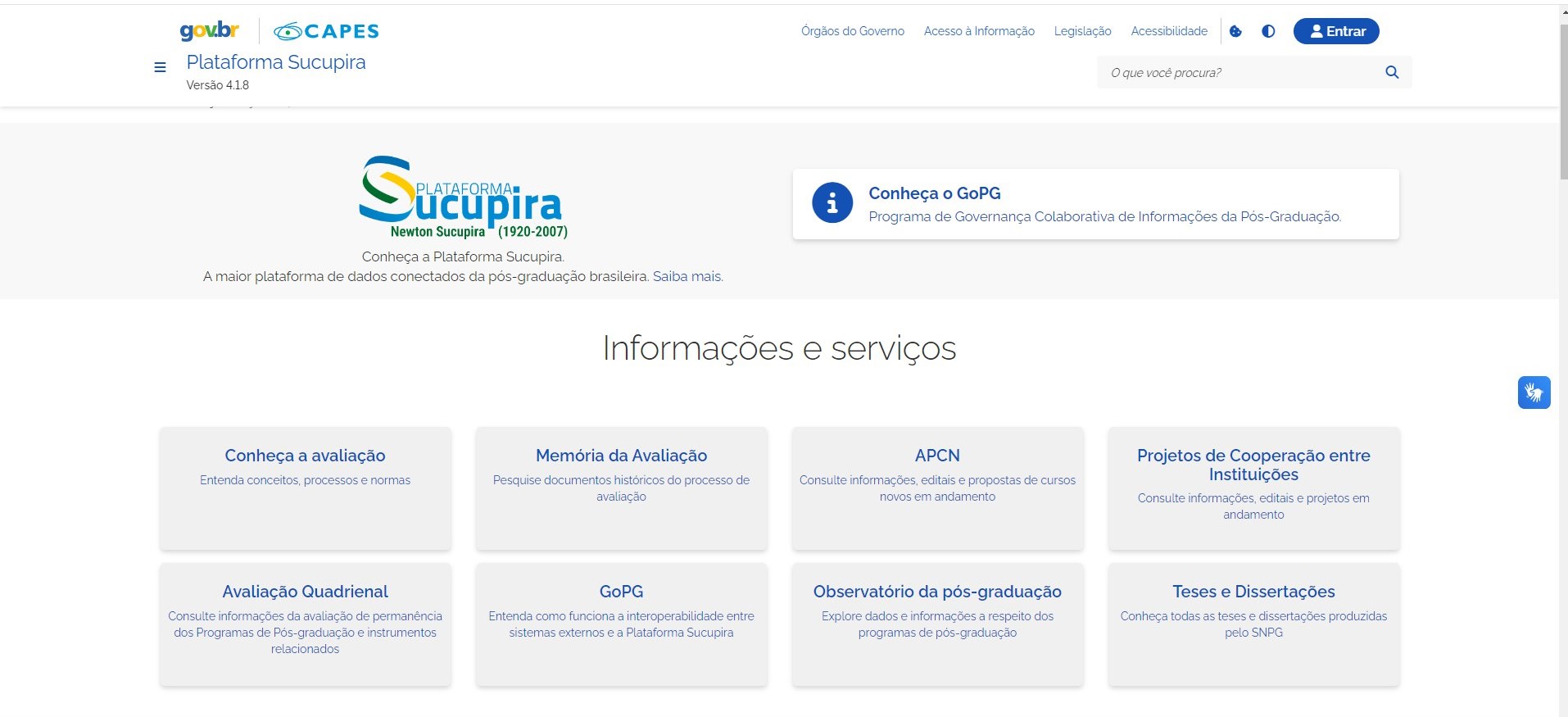 Imagem: Print da tela inicial da Plataforma Sucupira (Divulgação)