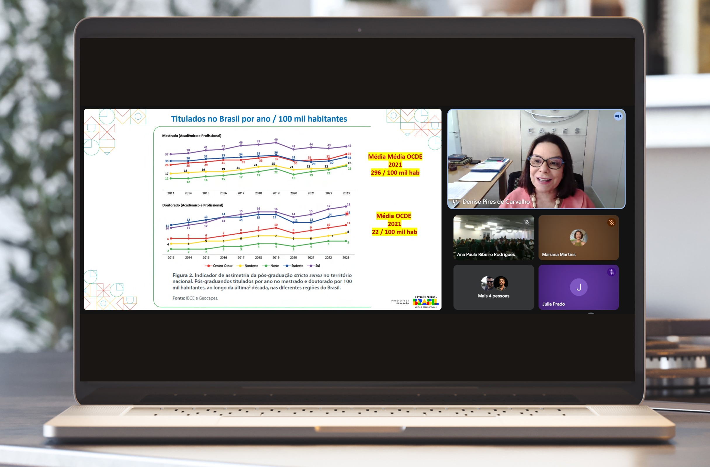 A presidente da CAPES, Denise Pires de Carvalho, participou via videoconferência da abertura do Café com as Agências de Fomento, promovido pela Universidade Estadual do Ceará (Uece). A gestora citou ações de destaque da Coordenação, entre elas o Programa Redes para Internacionalização Institucional – CAPES-Global.Edu, e disse esperar que a Uece faça parte da iniciativa. A pró-reitora de Pós-Graduação e Pesquisa da instituição cearense, Ana Paula Ribeiro Rodrigues, disse que a Universidade não só tem interesse, como planeja ser a instituição de ensino superior (IES) coordenadora de uma rede, associada às IES UEPG, UFJ, UFSJ, UERN e Unioeste..