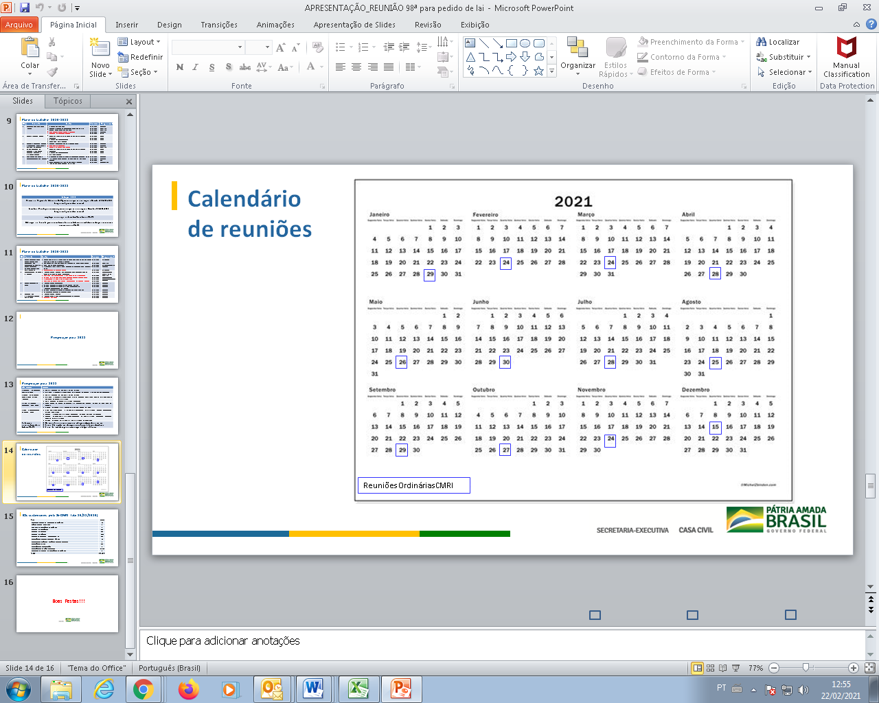 Arquivos em aberto de agendas da Subchefia de Articulação e Monitoramento da CC (2019-2022)