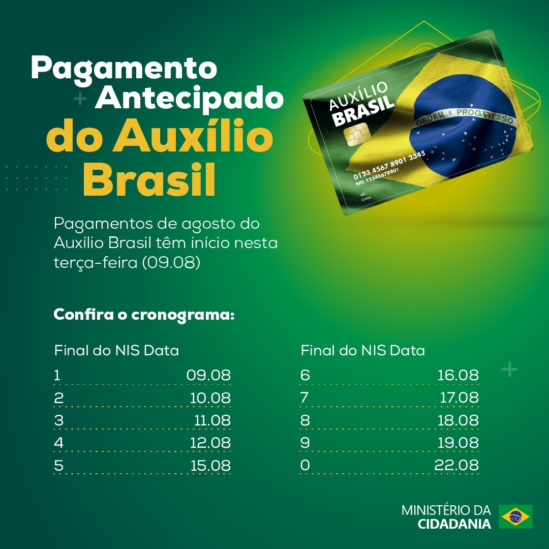 No total de 20,2 milhões de família beneficiárias do Auxílio Brasil em agosto, 82,5% dos lares têm como responsável uma mulher. Dados do Ministério da Cidadania apontam ainda a inclusão de 2,2 milhões de novas famílias de julho para agosto. O início dos pagamentos do mês será na terça (9), para quem tem Número de Identificação Social (NIS) com final 1 (confira o calendário abaixo). O valor mínimo a ser pago é de R$ 600.