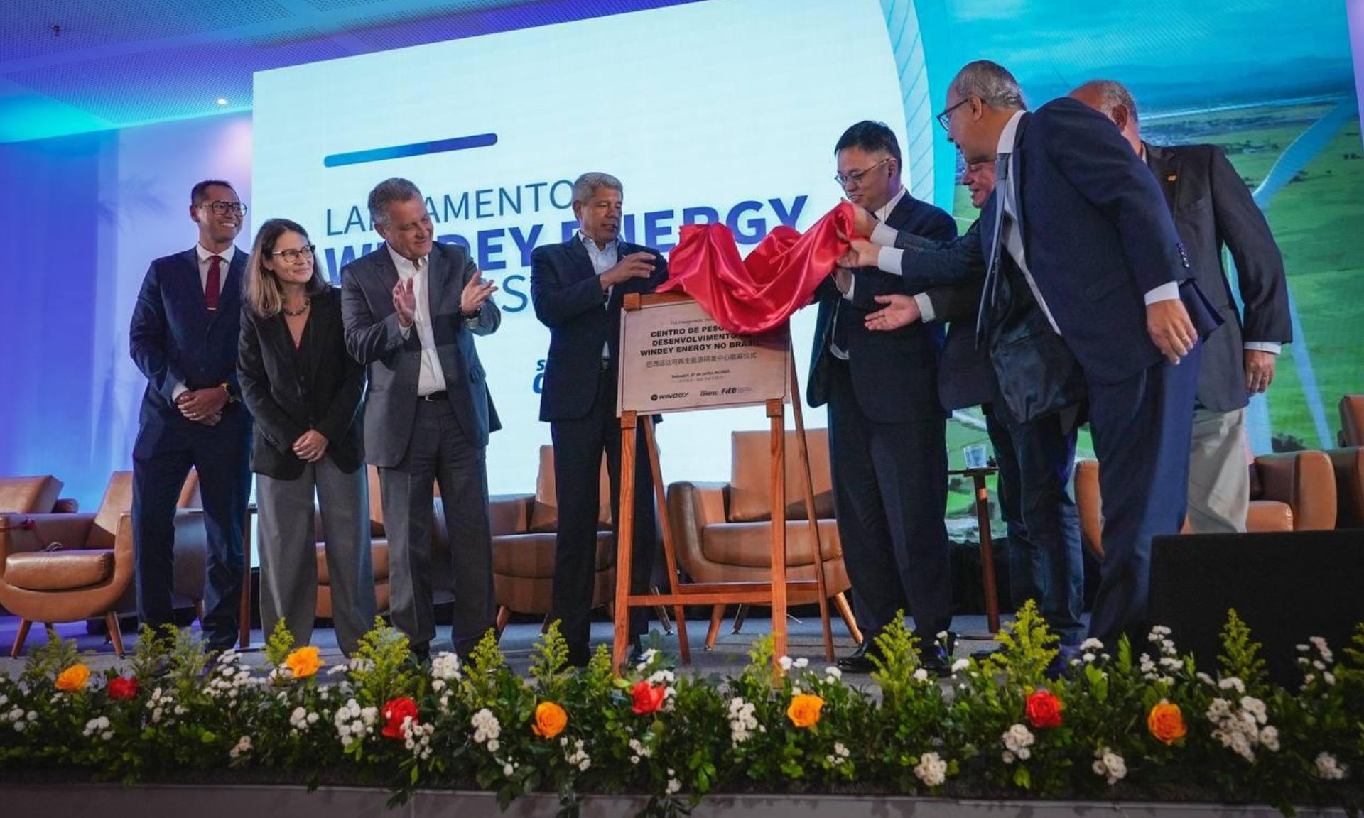 A empresa Windey Energy, estatal chinesa fabricante global de turbinas eólicas, está chegando ao Brasil com a instalação do seu primeiro escritório em Salvador (BA) e com a implantação de um Centro de Pesquisa e Desenvolvimento, em parceria com o Senai Cimatec. O ministro da Casa Civil, Rui Costa, participou da cerimônia, ao lado do governador Jerônimo Rodrigues e do senador Jaques Wagner, onde falou sobre o compromisso do Brasil com políticas voltadas para transição energética.