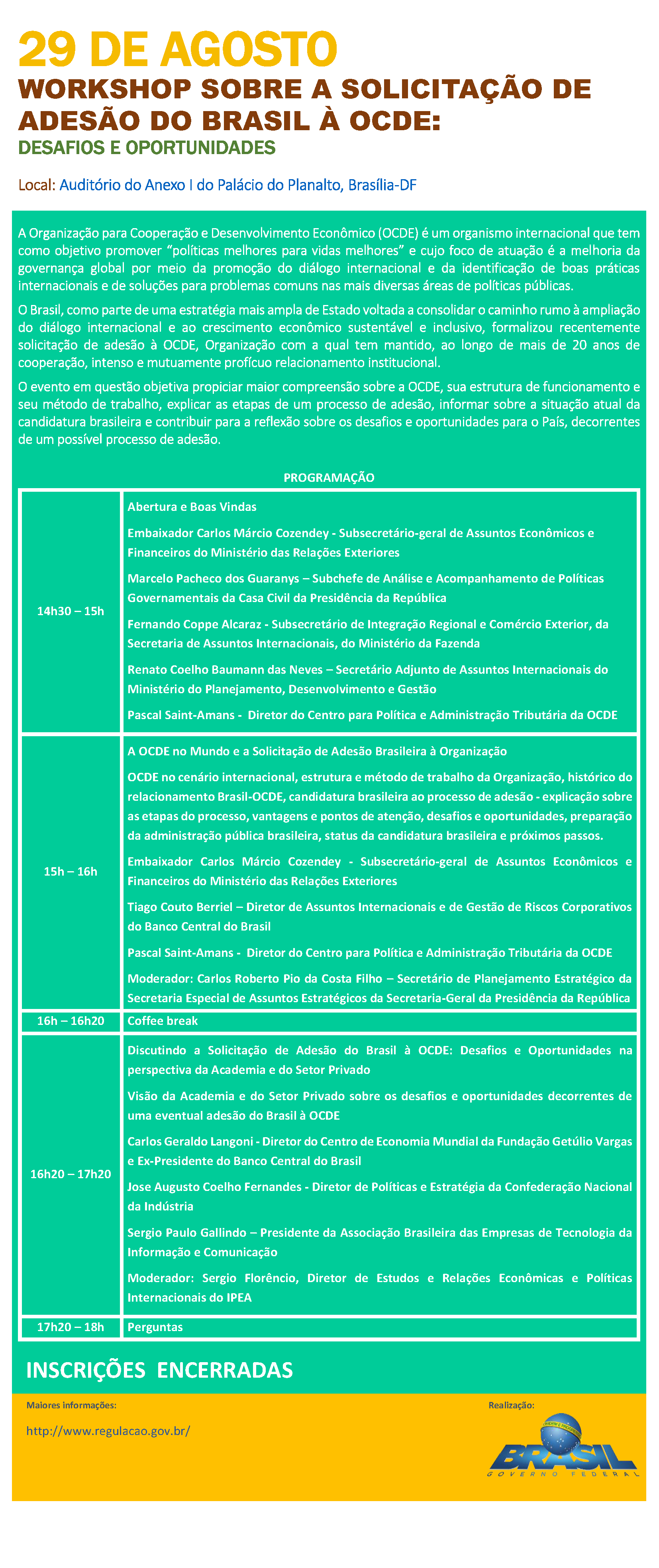 Workshop Solicitação de Adesão do Brasil à OCDE: Desafios e Oportunidades - Casa Civil/PR