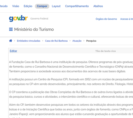 Manual do novo portal da Fundação Casa de Rui Barbosa - 1 ed. Autora: Eula D.T.Cabral. FCRB: 2022.