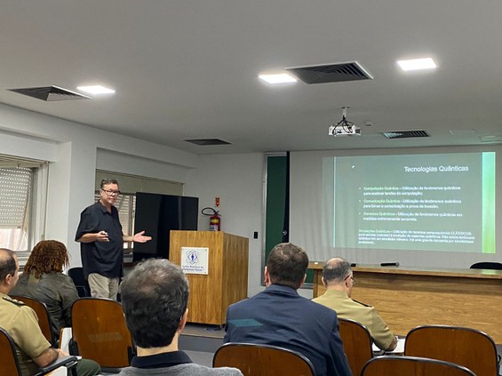Na ocasião, foi apresentada a pesquisa na área de tecnologias quânticas desenvolvida no instituto, através dos servidores da casa: Ivan S. Oliveira, Alexandre Martins e Clécio De Bom, assim como o convidado da Universidade Federal Fluminense (UFF), Prof. Antonio Zelaquett Khoury.
