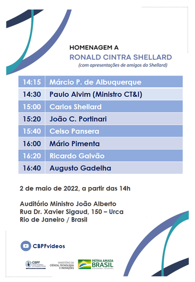 O Centro Brasileiro de Pesquisas Físicas (CBPF), no Rio de Janeiro, realizará na próxima segunda-feira, 02/05, a partir das 14h, uma homenagem ao físico e diretor do CBPF Ronald Cintra Shellard, falecido em dezembro de 2021.