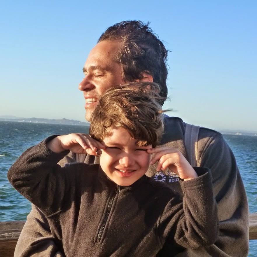 O tecnologista do CBPF André Luiz Pinto e o filho, Vinícius