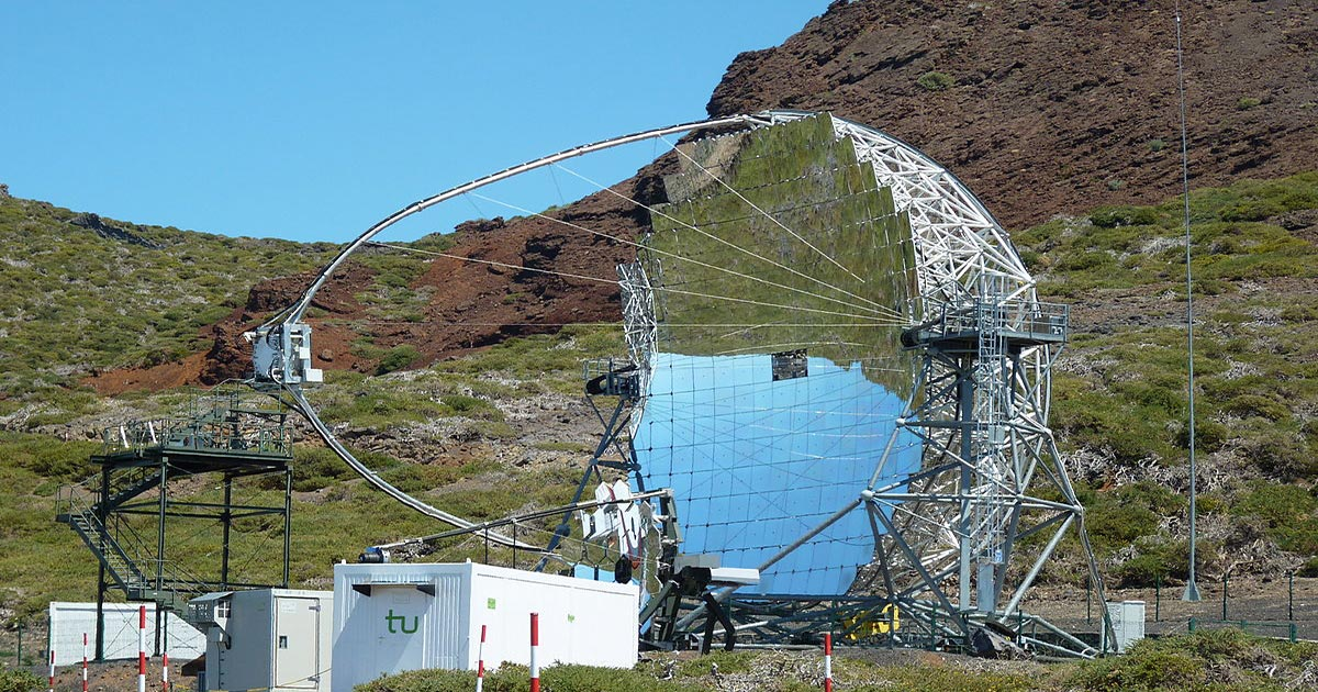 Telescópio do MAGIC, que participou do resultado que relacionou fótons com neutrinos
