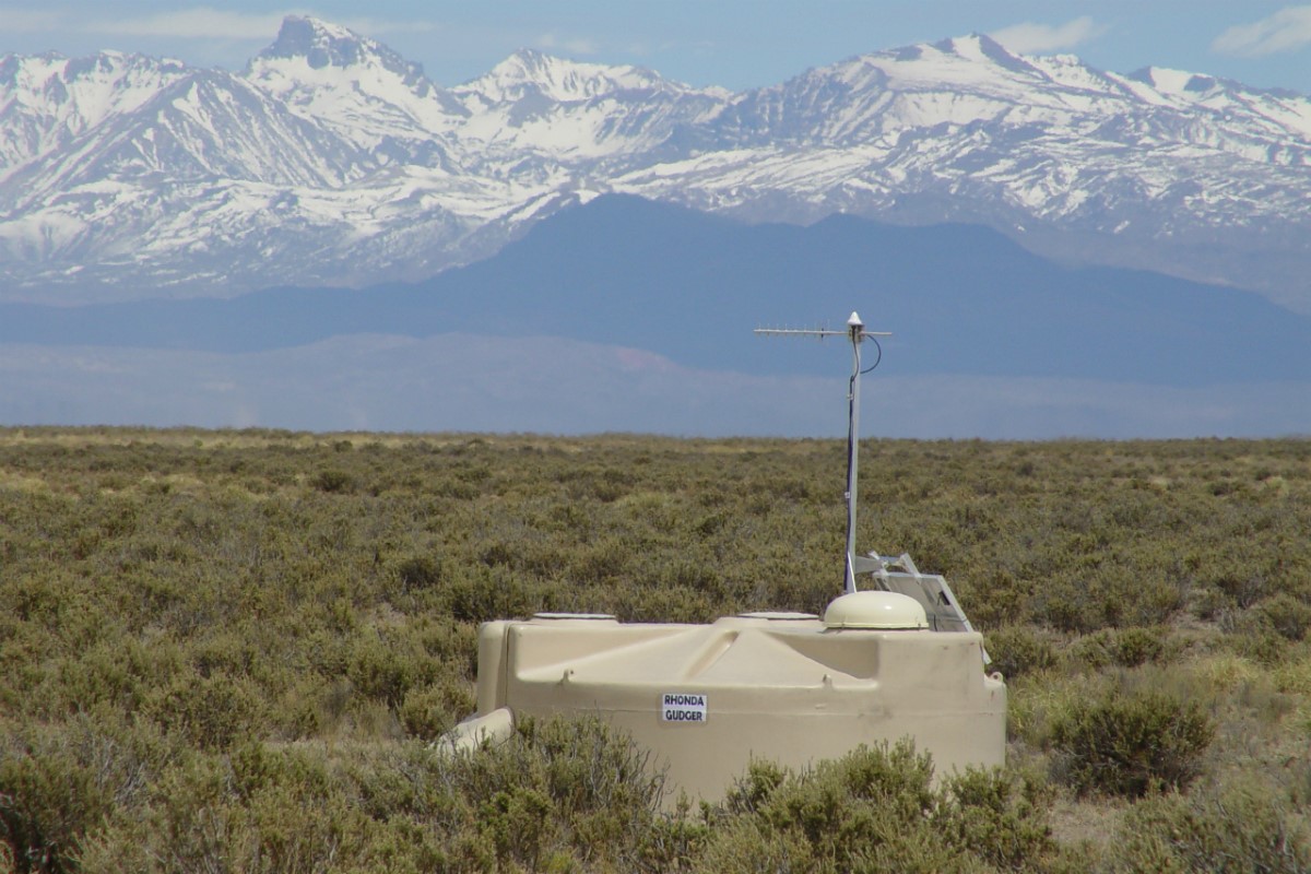 Um dos 1,6 mil detectores do Laboratório Pierre Auger (Argentina), que estuda raios cósmicos