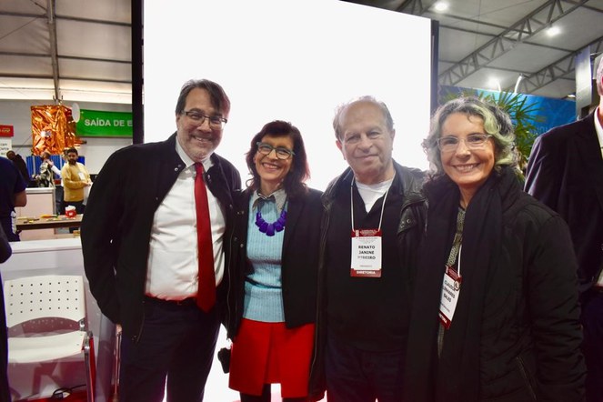 Márcio Albuquerque (diretor do CBPF), Márcia Barbosa (secretária de Políticas e Programas Estratégicos do MCTI), Renato Janine Ribeiro (presidente da SBPC) e Cláudia Sales (secretária-geral da SBPC)