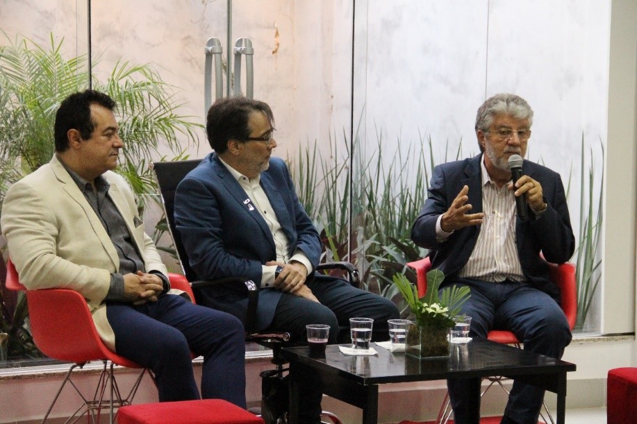 A seguir, juntamente com pesquisadores, tecnologistas e outros colaboradores do instituto dirigiram-se ao Espaço Oliveira Castro para uma conversa que abordou, principalmente, a importância de ampliar o debate entre as UPs do Rio de Janeiro e a fundação, visando o fortalecimento da pesquisa e do desenvolvimento tecnológico que se faz no estado.
