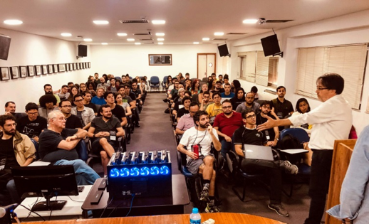 Um auditório lotado com alunos e funcionários presenciou o lançamento do supercomputador, transferido para a Petrobras para ser usado em pesquisas avançadas em petrofísica. Clécio Roque De Bom, pesquisador colaborador do CBPF, explicou que “o SciMining tem uma proposta inédita: um programa de inteligência artificial que aprende o modelo a partir dos dados a serem simulados”. Segundo ele, cria-se, assim, um simulador de redes neurais fundamentado em dados reais (com base na natureza) e não mais na idealização do pesquisador em como o sistema físico deve se comportar.