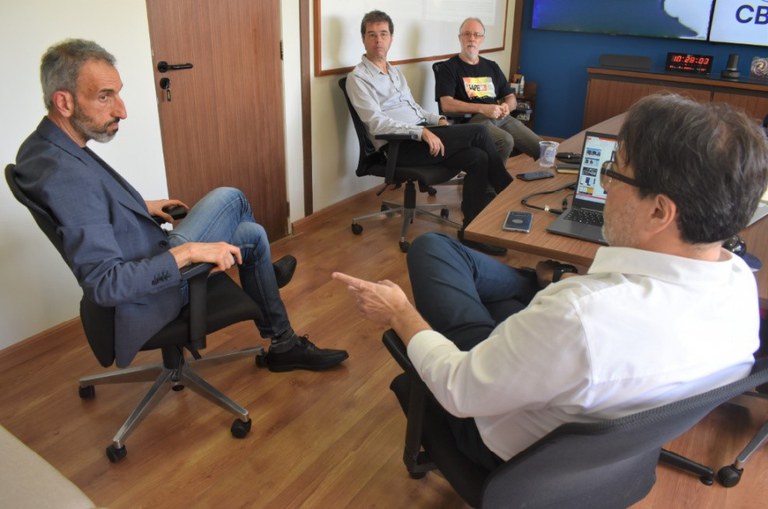 Salvatore Mele, o diretor do CBPF Márcio P. Albuquerque e o coordenador de