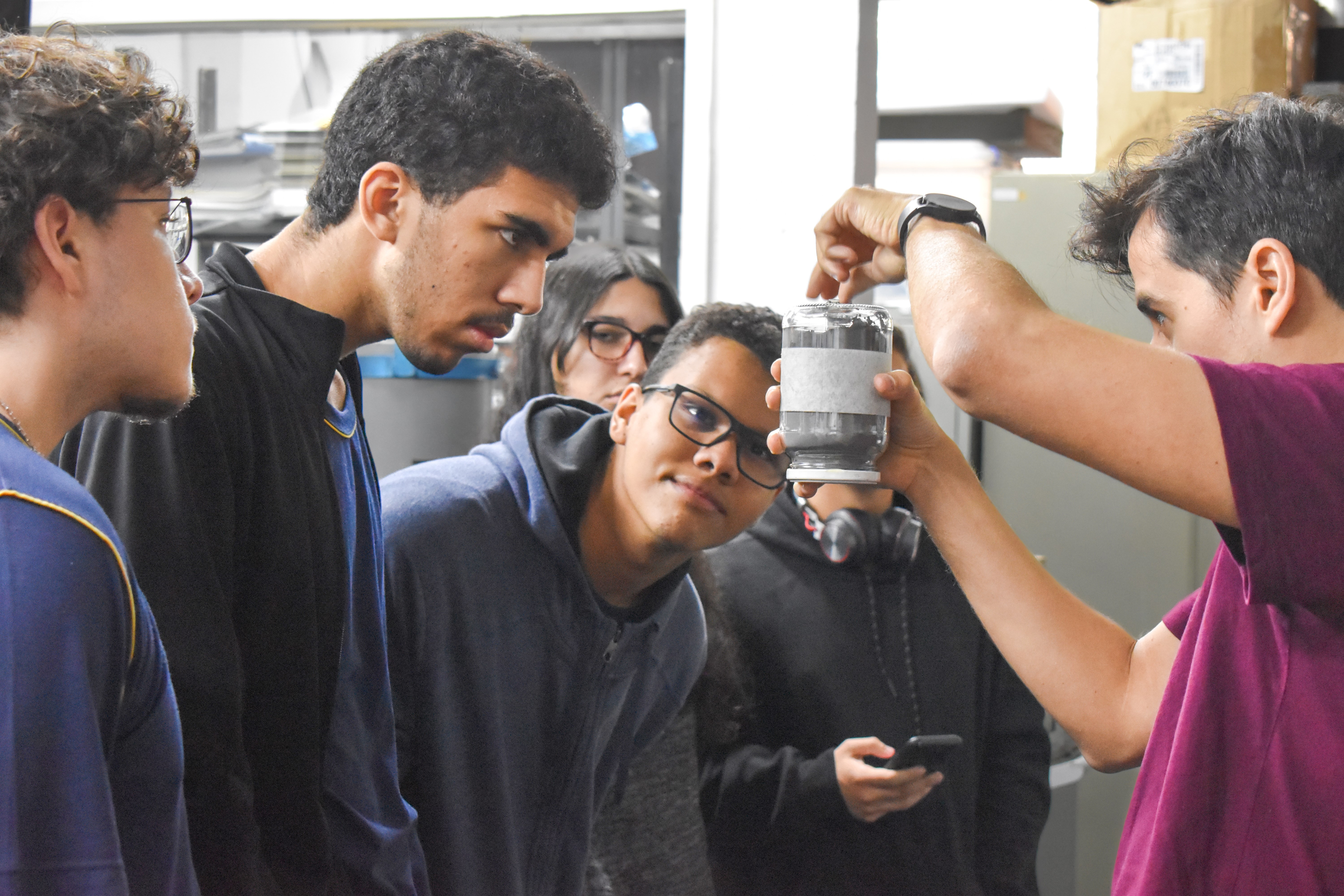 No dia 7 de outubro, os alunos do Colégio Paranapuã participaram de uma visita ao Laboratório Didático (LabDid), ao Laboratório de Ressonância Magnética e ao Laboratório de Magnetismo. O aluno Pedro Arthur compartilhou sua experiência: “A visita foi muito interessante, é bem difícil as pessoas terem conhecimento desses institutos, desses centros de pesquisa. Foi realmente algo que eu não esperava, ver tantos laboratórios, ver tantas máquinas que a gente ouve falar na escola mas que não fazem sentido da nossa cabeça.”