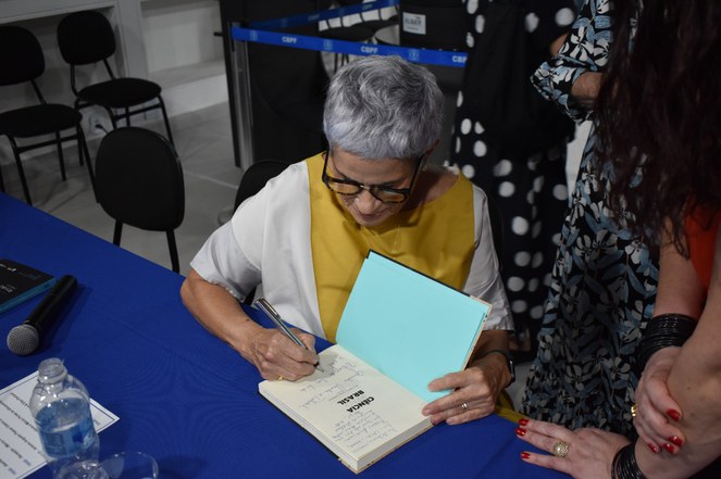 Elisa emocionou os presentes ao falar do privilégio de viver ao lado de um homem tão feliz que amava sua profissão. “Tudo que ele fez em ciência foi construído com dedicação e muito trabalho, esse livro é a melhor homenagem que poderia ser feita para o Roni (apelido carinhoso do Shellard), fica a gratidão ao CBPF com sua equipe maravilhosa. Tive a grande honra de fazer as ilustrações do livro Esse projeto foi desenvolvido por pessoas competentes e ao mesmo tempo grandes amigos nossos” completou Elisa.