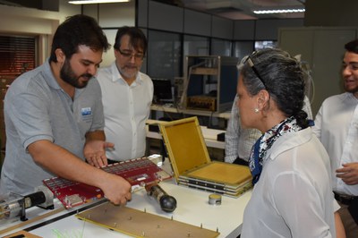 Em seguida, o grupo percorreu o novo Laboratório de Tecnologia Quântica, o Núcleo de Informação C&T e Biblioteca (NIB), o Laboratório Multiusuário de Nanociência e Nanotecnologia (LabNano), o GRID/CBPF, o Laboratório de Instrumentação e Tecnologia de Computação (LITCOMP), a Rede-Rio, o Núcleo de Inovação Tecnológica (Nit-Rio), o pavilhão Mário de Almeida, a Oficina Mecânica e o Rio Science Data Center (RSDC).
