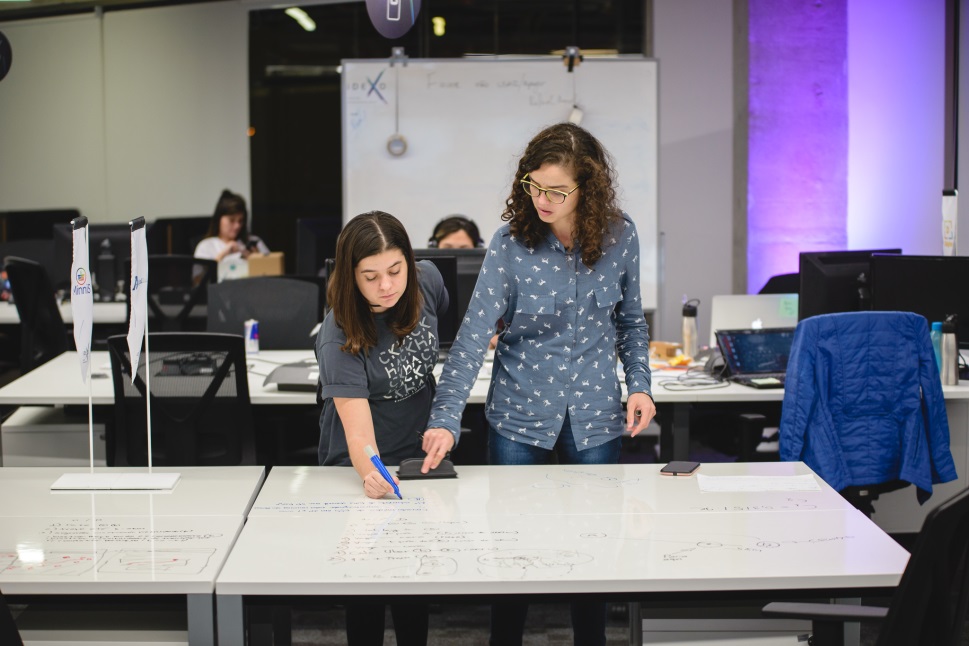 Daniela Leite (dir.) e Laurence Alves, no Uber Hack, em São Paulo