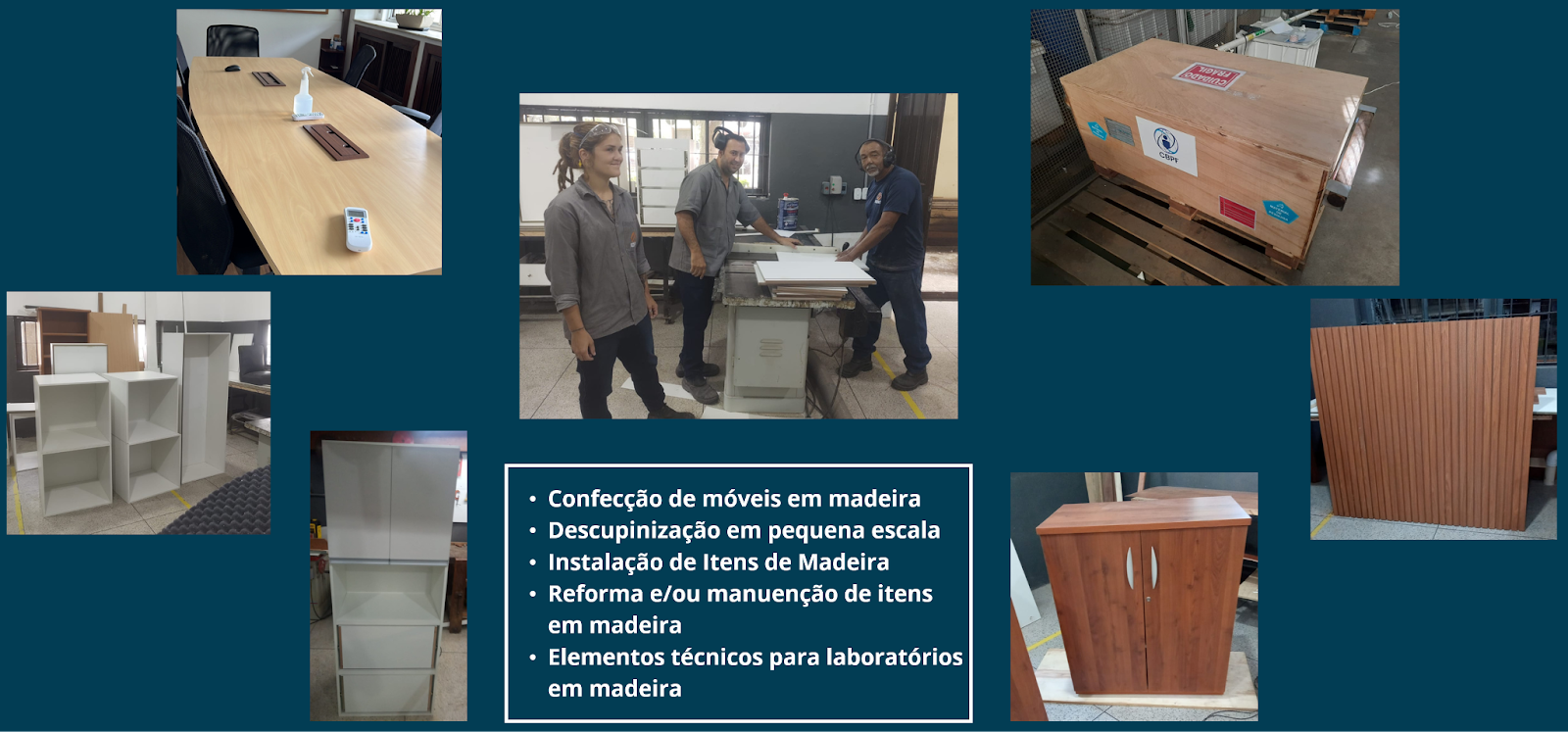 O Núcleo de Marcenaria é fundamental para a fabricação de peças e componentes de madeira de alta qualidade, atendendo às demandas dos laboratórios de pesquisa do CBPF e colaborações. Com expertise em trabalhar com diversos tipos de madeira e usando técnicas tradicionais e equipamentos modernos, o núcleo planeja, corta, monta e finaliza peças sob medida, garantindo a precisão e qualidade necessárias para apoiar experimentos científicos e projetos do LITMec. Além disso, a marcenaria contribui para a estética e funcionalidade dos projetos, desempenhando um papel vital na missão do laboratório de apoiar a pesquisa de ponta.