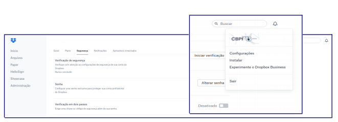 Faça login em sua conta do Dropbox e vá em “Configuração” depois vá em “Segurança” e “Verificação em dois passos” e siga as instruções.
