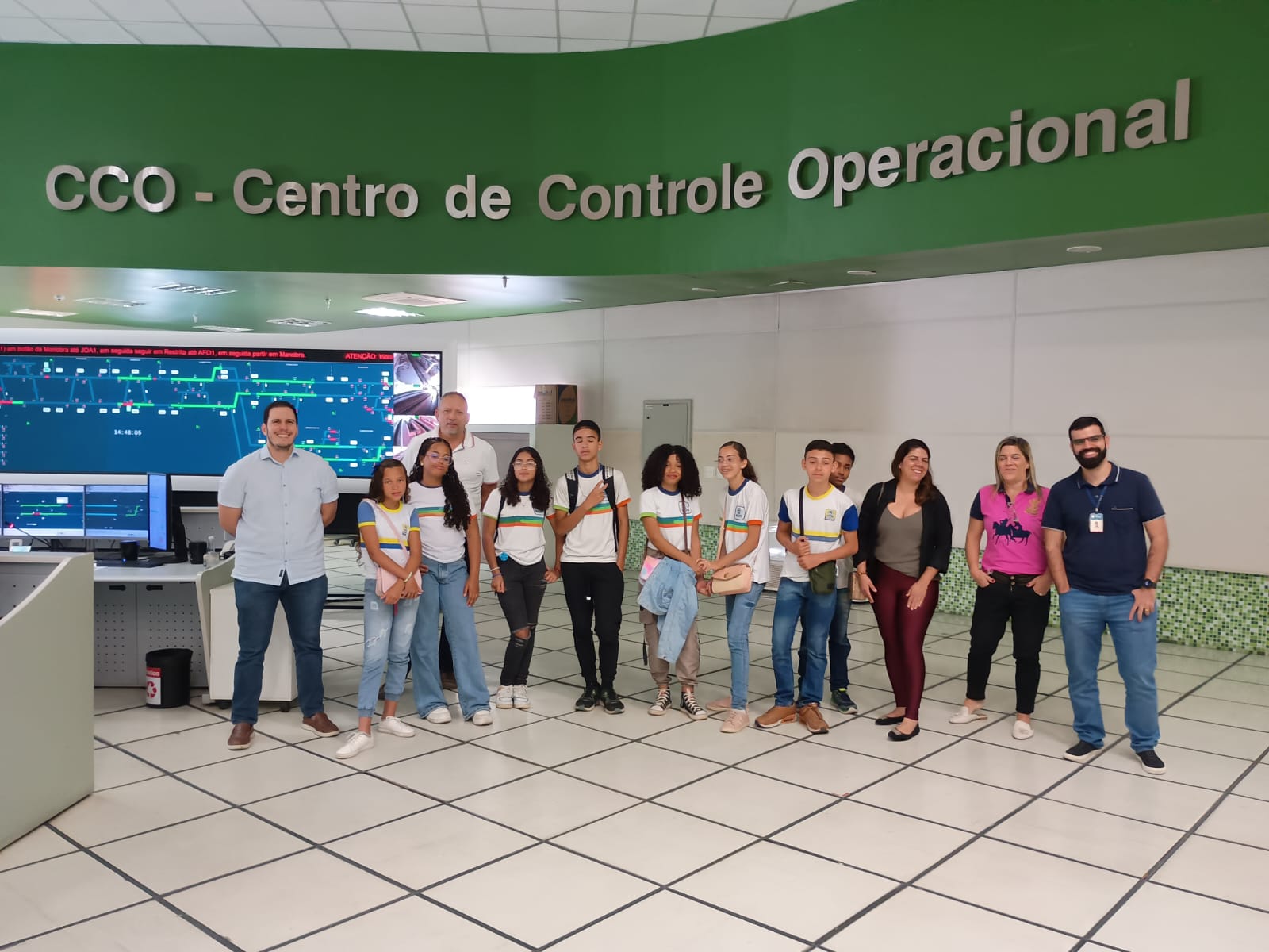 Outro ponto alto da visita foi a passagem pela sala de monitoramento da CBTU, onde os alunos puderam entender como é feita a supervisão e o acompanhamento da operação dos trens. A experiência ofereceu uma visão prática do que envolve garantir o bom funcionamento do sistema de metrô, reforçando a importância da segurança e da tecnologia no cotidiano do transporte público.