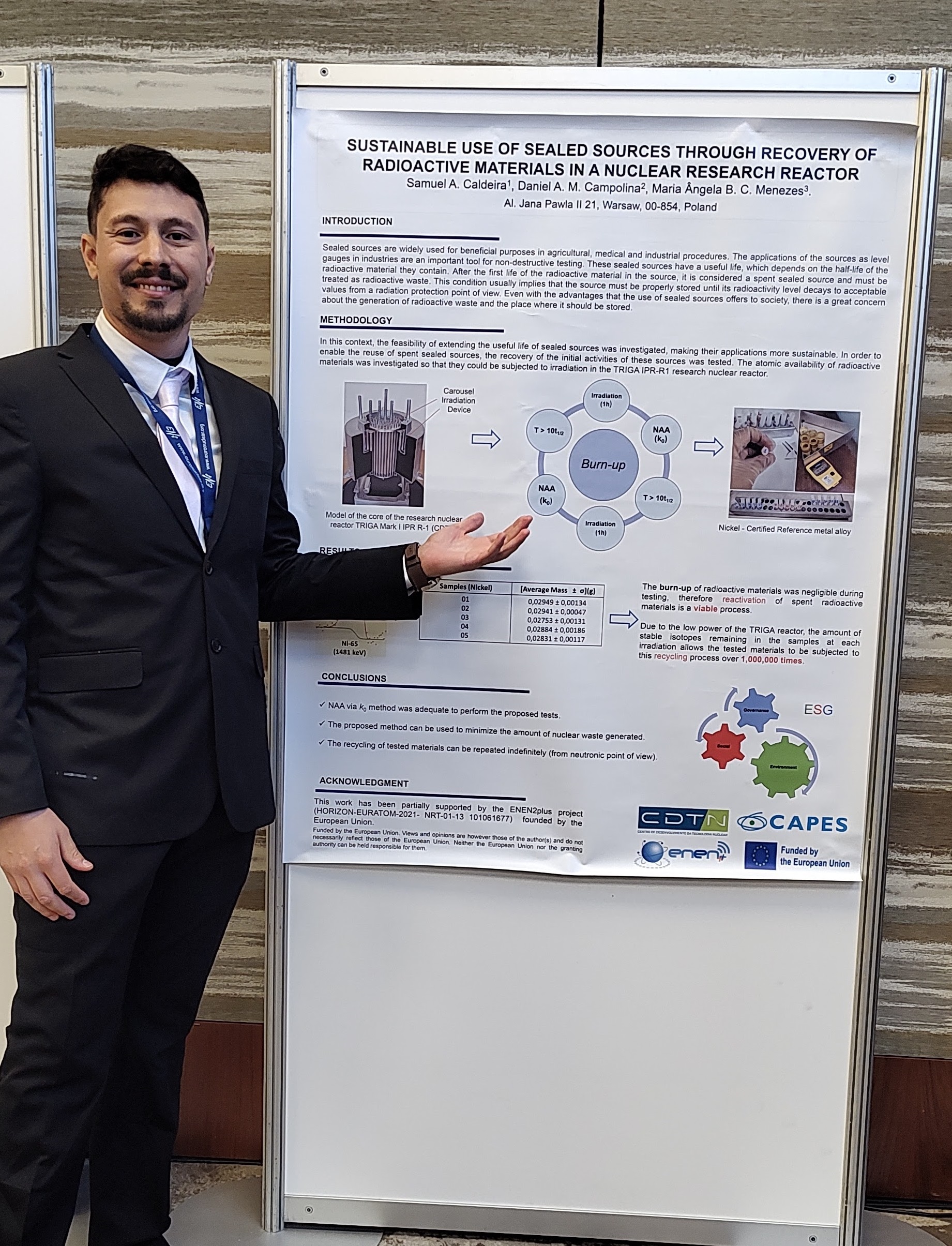 O doutorando do Programa de Pós-Graduação em Ciência e Tecnologia das Radiações, Minerais e Materiais (PPG-CDTN), Samuel Caldeira, foi o único brasileiro na competição da Sociedade Nuclear Europeia e o único que representou uma instituição da América do Sul. A iniciativa faz parte do evento European Research Reactor Conference 2024, realizado entre os dias 21 e 25 de abril, em Varsóvia, na Polônia.