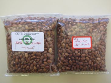 Feijão tratado por processo de irradiação visando desinfestação à esquerda irradiado e à direita não irradiado