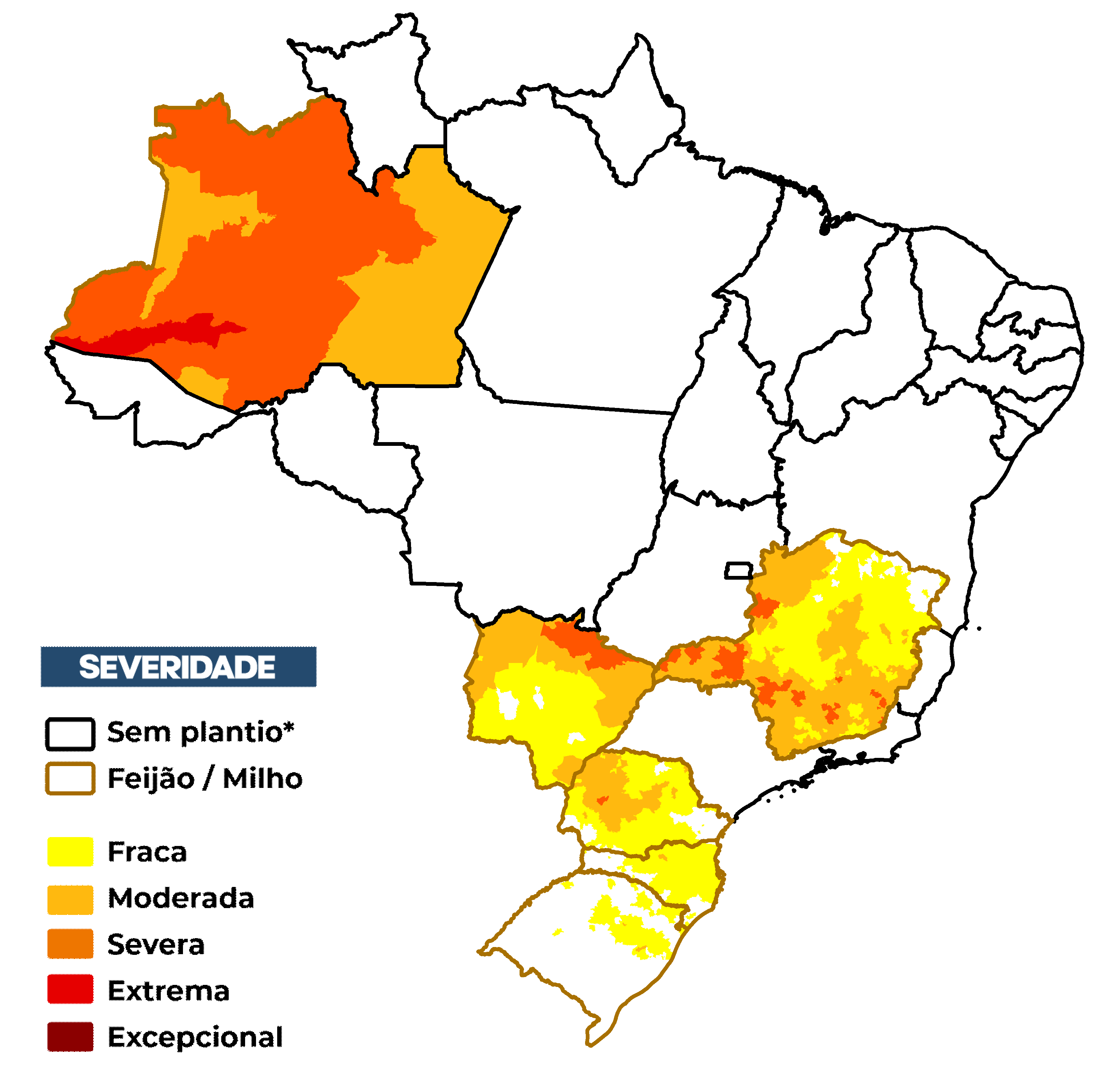 Figura 1 – Severidade da seca (IIS1) referente ao mês de agosto considerando apenas os estados com calendário vigente.