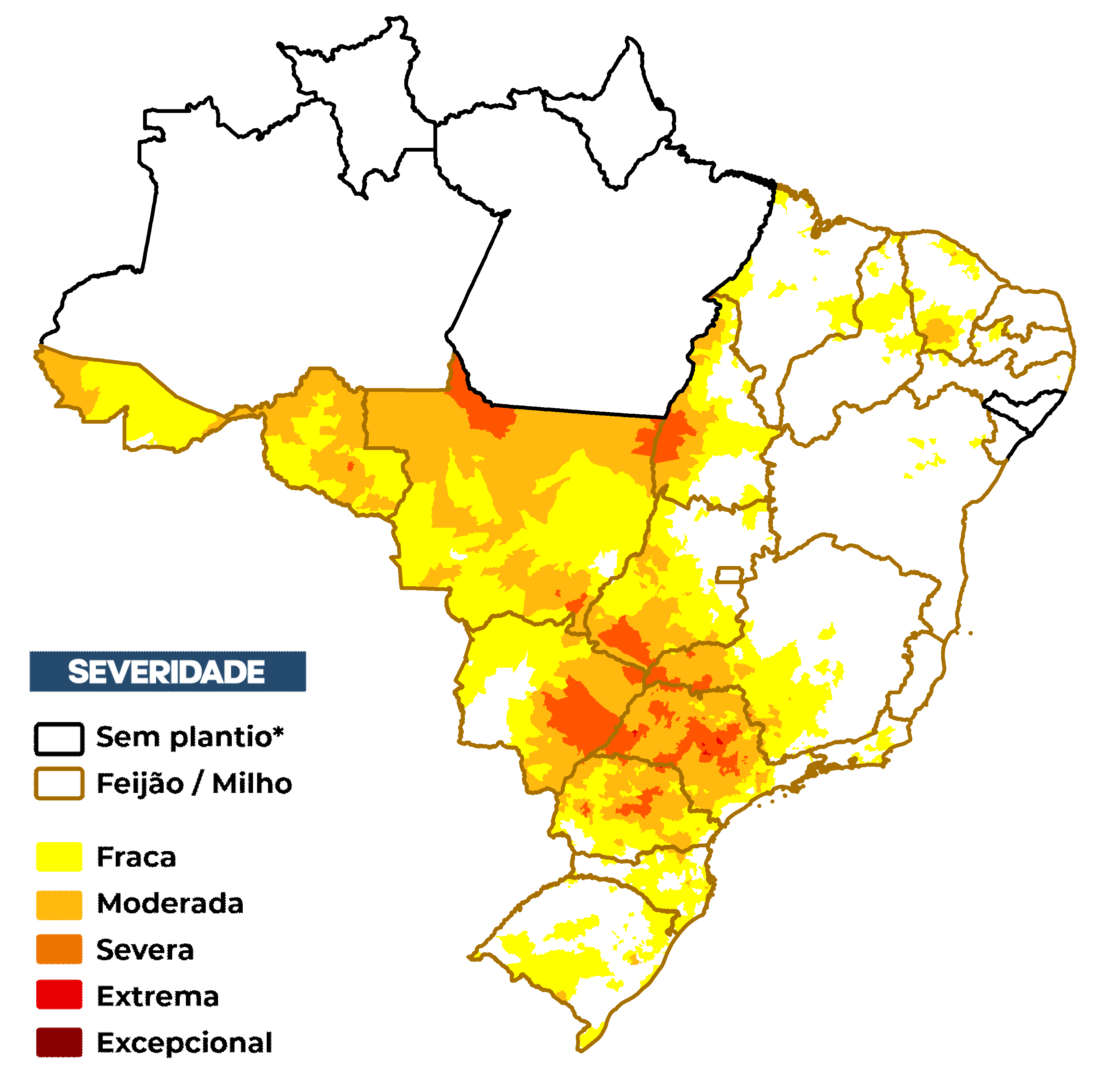 Figura 1 – Severidade da seca (IIS1) referente ao mês de fevereiro considerando apenas os estados com calendário vigente.