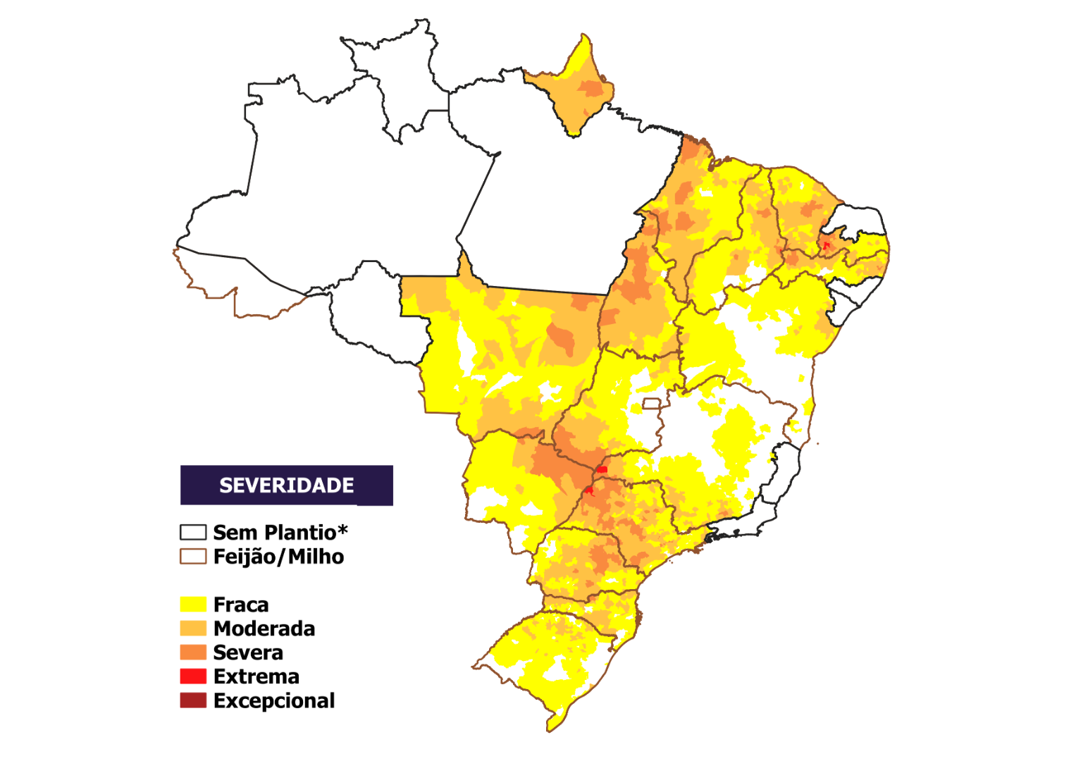 As diferentes condições da severidade da seca podem indicar atenção nas diferentes etapas do ciclo das culturas. Seca fraca sinaliza uma atenção, mas não necessariamente um impacto na produção. Por outro lado, secas nas categorias moderada a excepcional já podem sinalizar algum impacto, dependendo do período em que ocorre o déficit hídrico. Se as condições de seca moderada a excepcional ocorrerem no início do plantio, pode indicar o atraso no calendário de plantio; e, caso ocorra no meio do ciclo, pode indicar a quebra de safra.