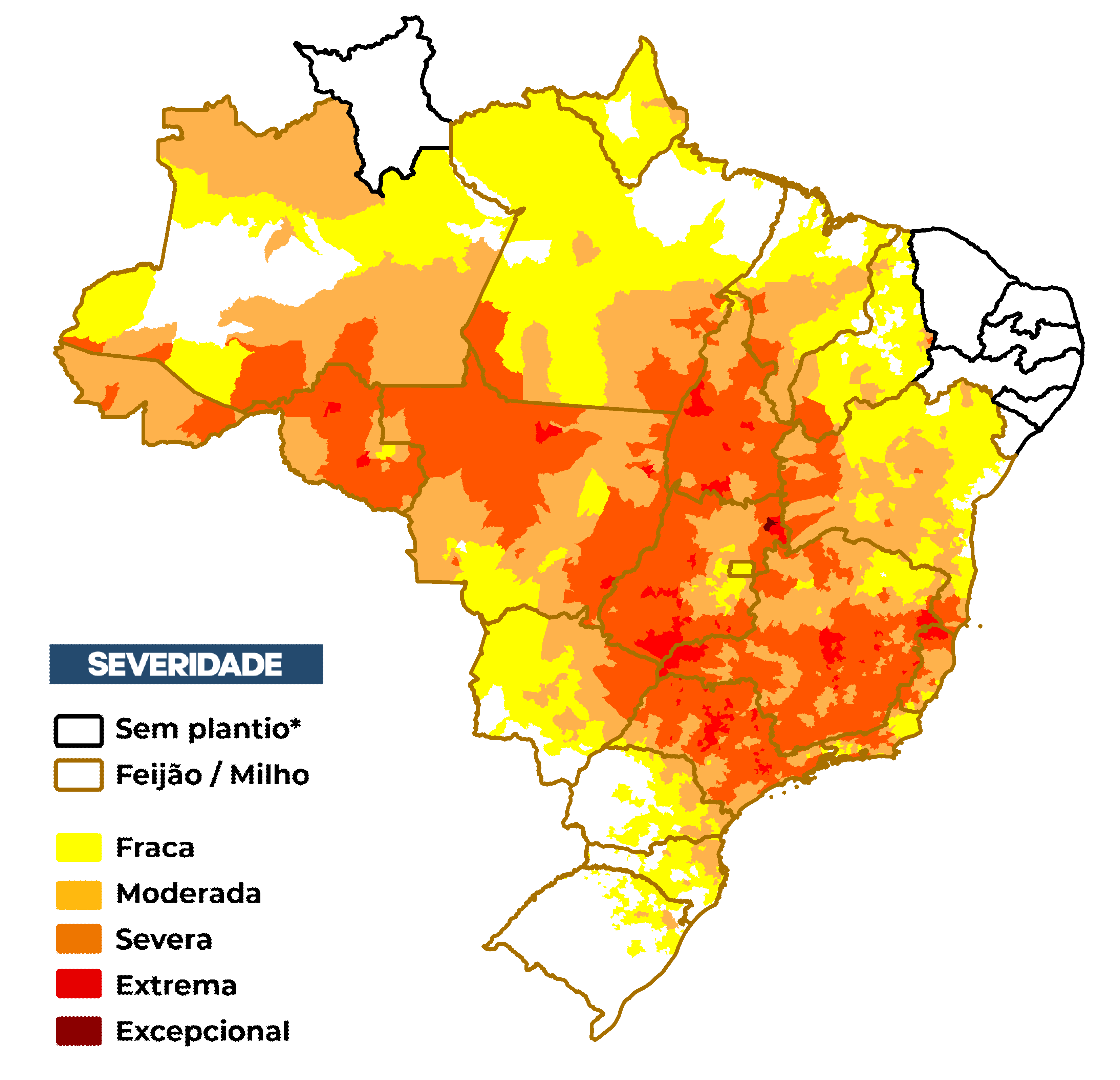 As diferentes condições da severidade da seca podem indicar atenção nas diferentes etapas do ciclo das culturas. Seca fraca sinaliza uma atenção, mas não necessariamente um impacto na produção, por outro lado, secas nas categorias moderada a excepcional já podem sinalizar algum impacto, dependendo do período que ocorre o déficit hídrico. Se as condições de seca moderada a excepcional ocorrerem no início do plantio, pode indicar o atraso no calendário de plantio; e caso ocorra no meio do ciclo, pode indicar a quebra de safra.