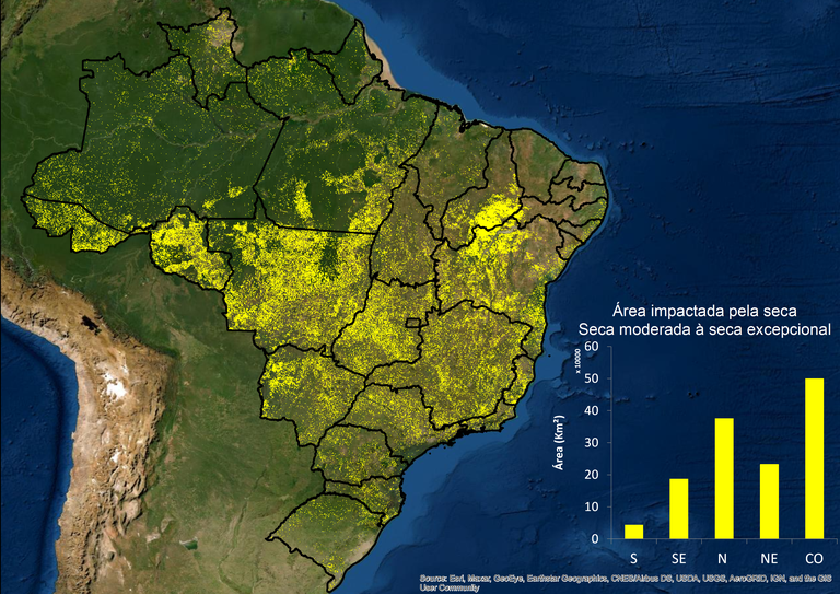 De acordo com a avaliação dos impactos da seca em áreas de atividades agrícolas e/ou pastagens (agroprodutivas), 1.285 municípios apresentaram pelo menos 40% de suas áreas de uso impactadas no mês de junho. Os estados de Minas Gerais e Goiás foram os que tiveram os maiores números de municípios com 40% ou mais de áreas agroprodutivas afetadas. Minas Gerais o estado que teve mais municípios com impacto da seca superior a 80% da área agroprodutiva (25).