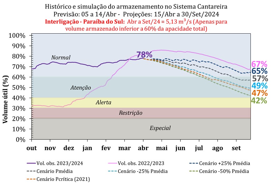 Ressalta-se que esses cenários podem ser modificados de acordo com mudanças na vazão de interligação com a bacia do rio Paraíba do Sul, bem como as extrações do Sistema a serem praticadas pelo operador, nos próximos meses.