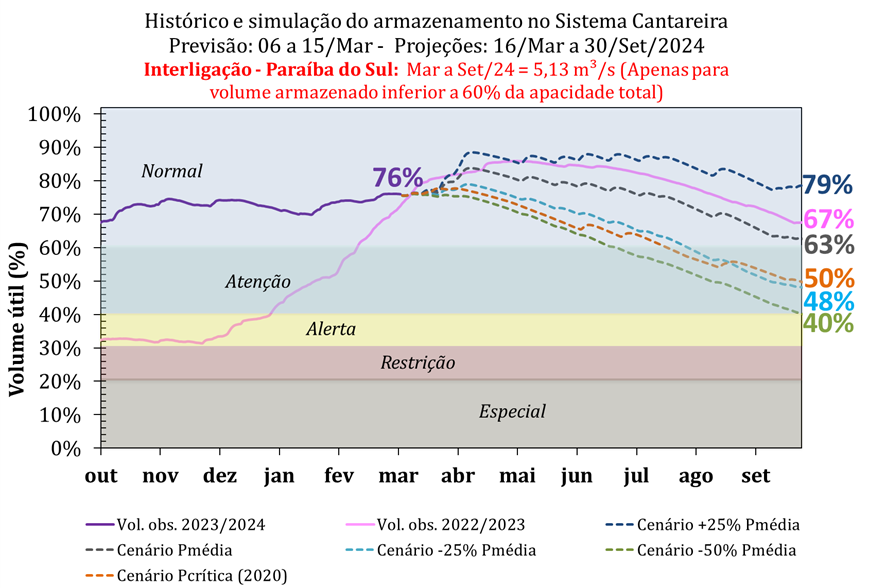 Ressalta-se que esses cenários podem ser modificados de acordo com mudanças na vazão de interligação com a bacia do rio Paraíba do Sul, bem como as extrações do Sistema a serem praticadas pelo operador, nos próximos meses.