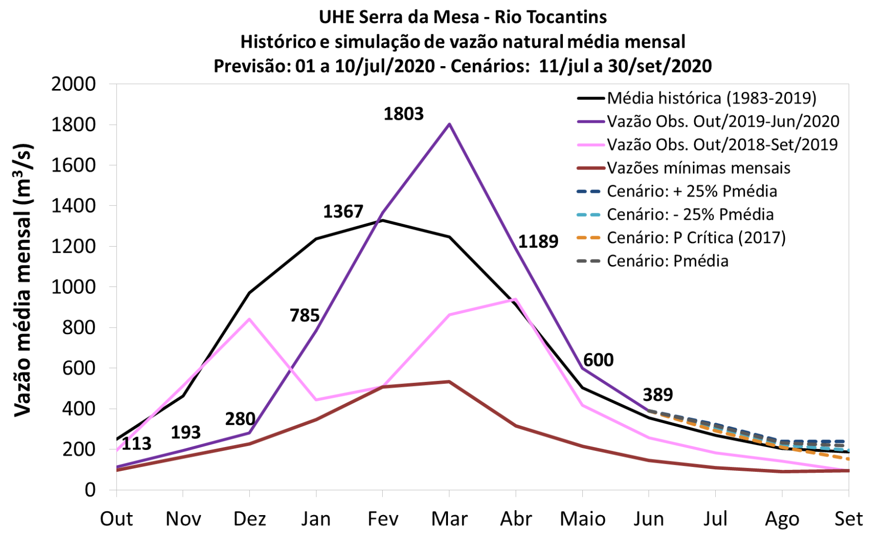 Situação Atual e Projeção Hidrológica para o reservatório de Serra da Mesa – Bacia do rio Tocantins – 01/07/2020