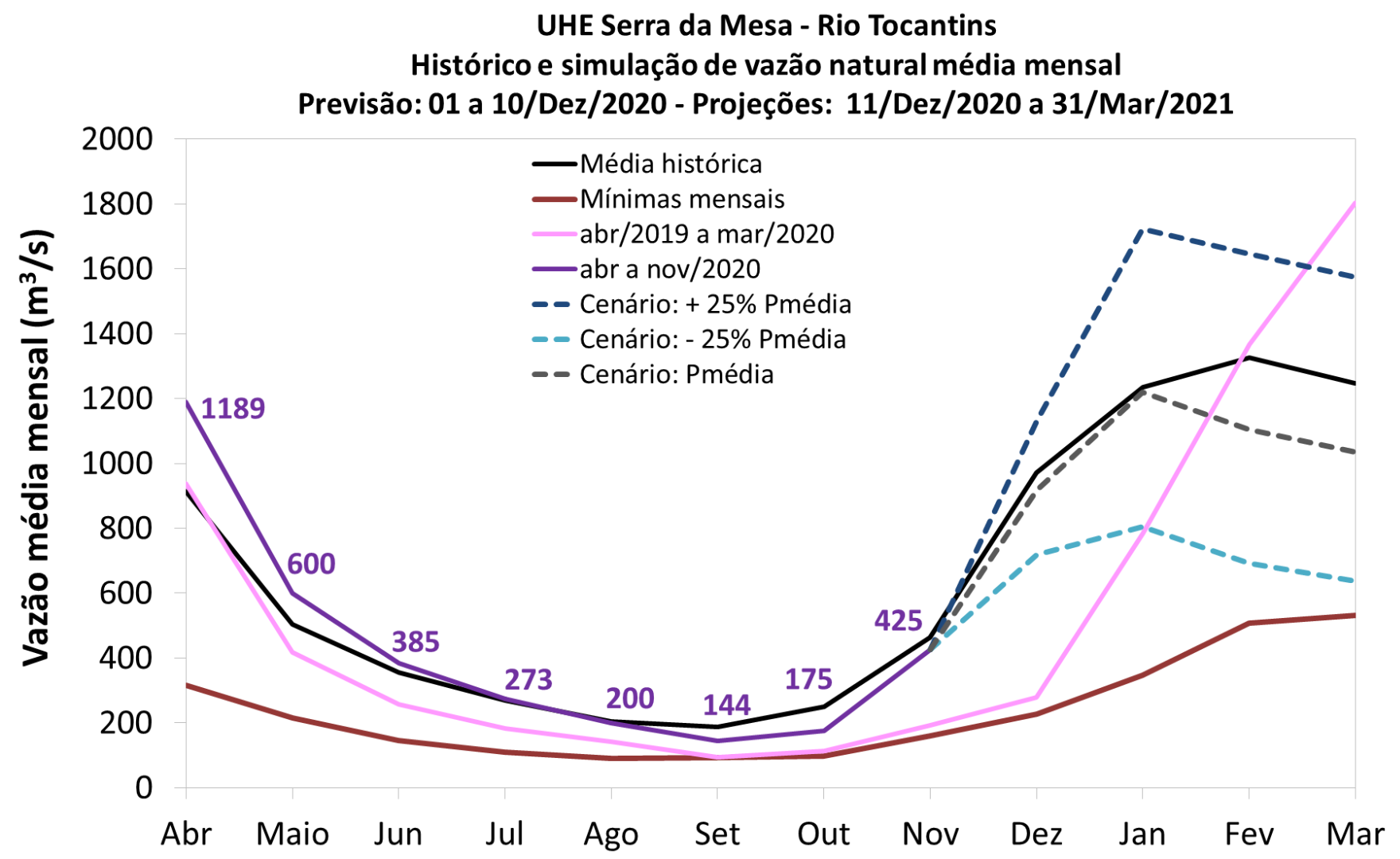 Situação Atual e Projeção Hidrológica para o reservatório de Serra da Mesa – Bacia do rio Tocantins – 04/12/2020