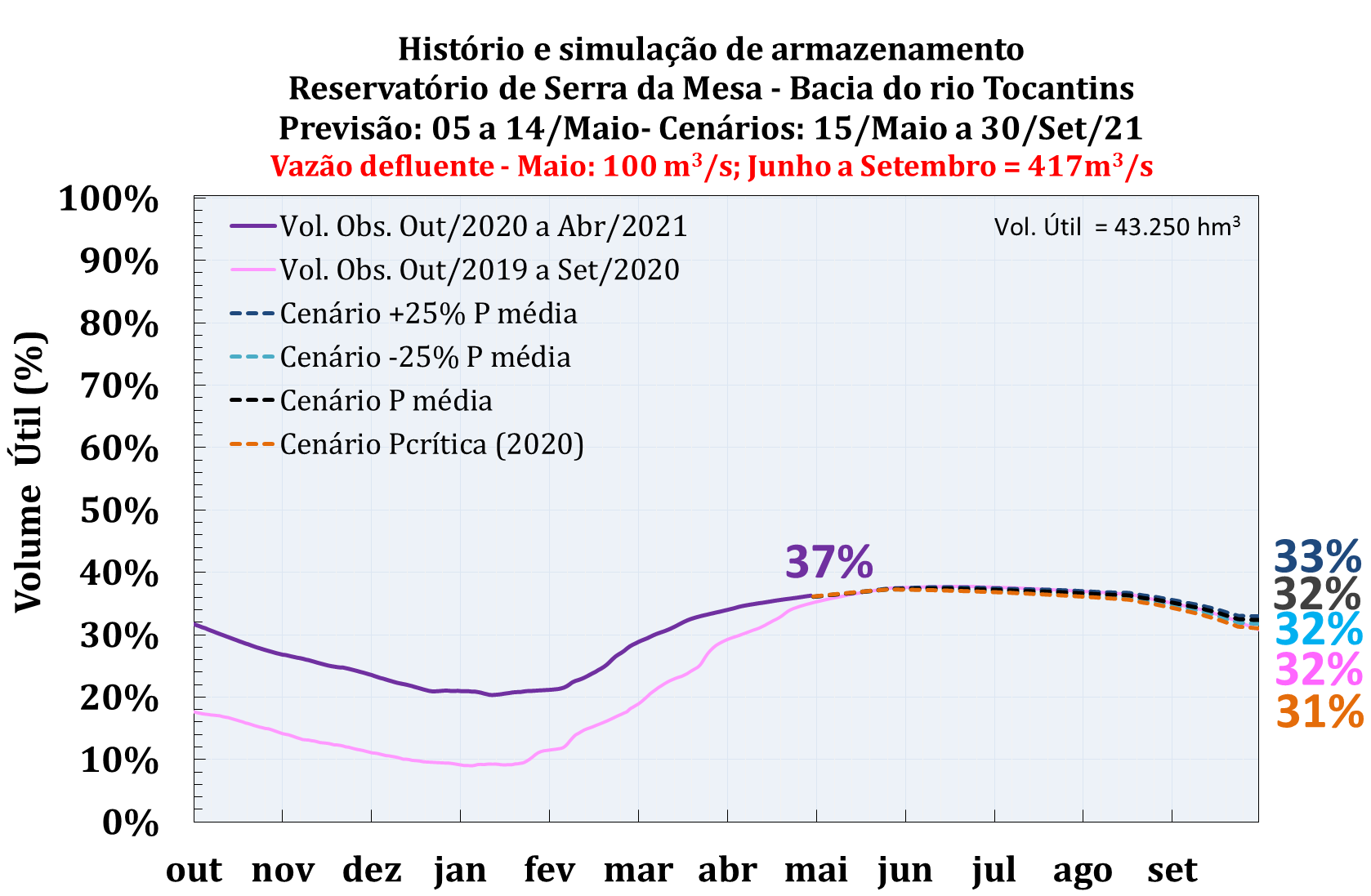 Situação Atual e Projeção Hidrológica para o reservatório de Serra da Mesa – Bacia do rio Tocantins – 11/05/2021