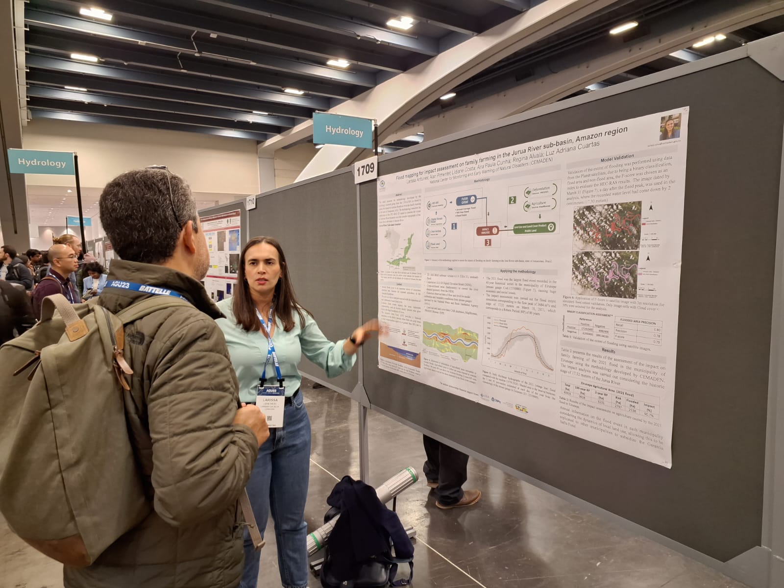 Na área de Hidrologia, a pesquisadora do Cemaden, Larissa Antunes Pimentel fez a exposição do estudo científico sobre “Avaliação do mapeamento de inundações na agricultura familiar na sub-bacia do Rio Juruá na Região Amazônica”.