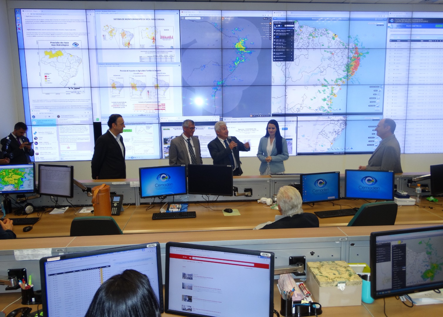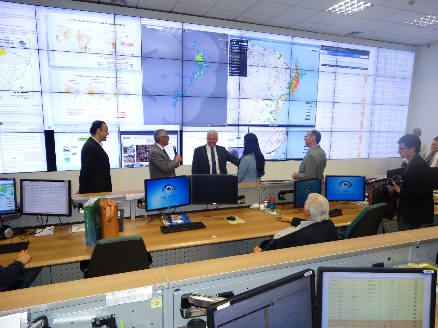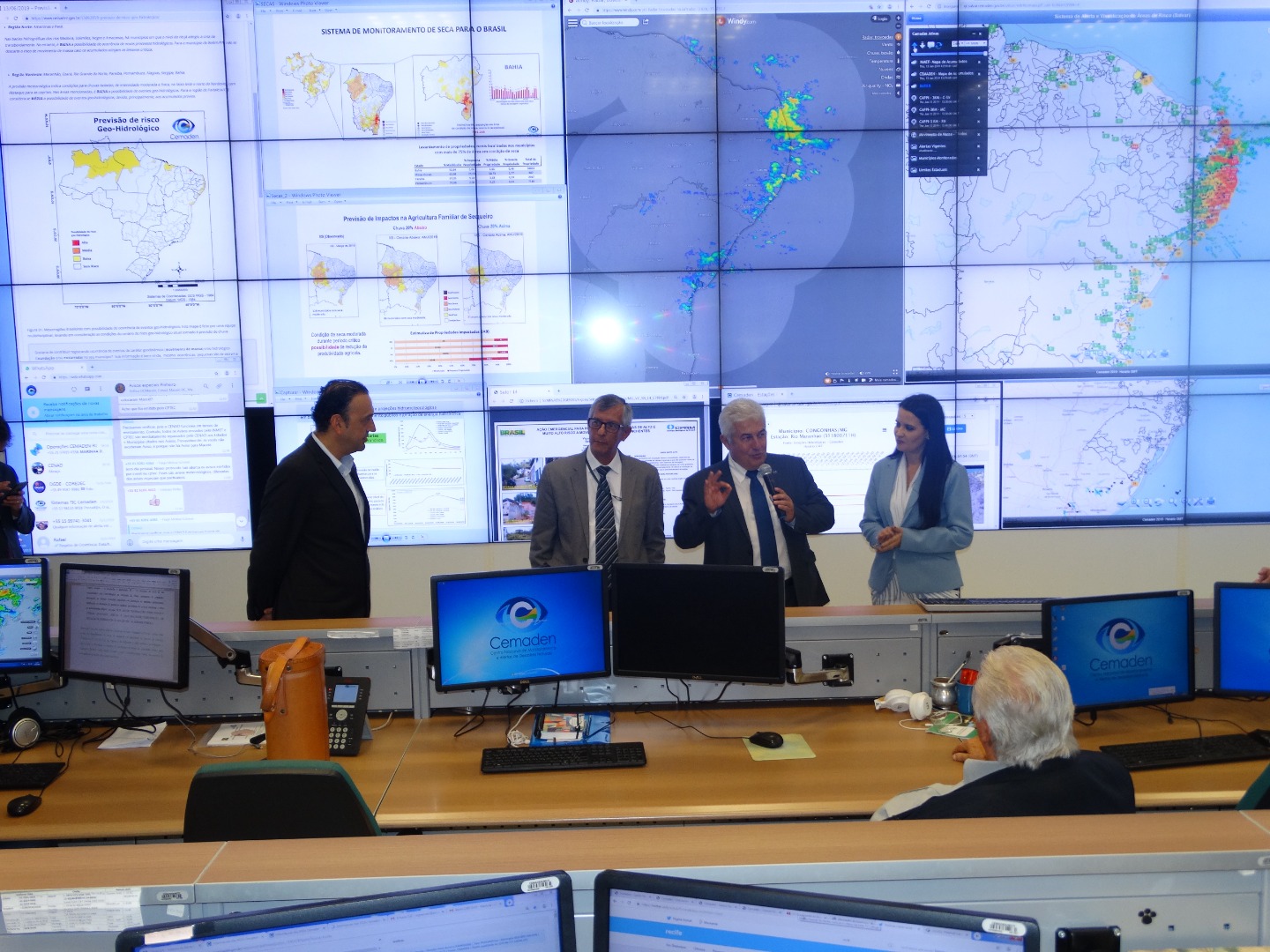 O diretor do Cemaden fez um resumo das atividades, destacando a equipe interdisciplinar com expertise, em diversas áreas, para o monitoramento e pesquisas em desastres naturais. O coordenador-geral de Operações e Modelagens, Marcelo Seluchi, apresentou o sistema de monitoramento das chuvas e de risco geo-hidrológico, bem como os tipos de alertas emitidos para risco de desastres. Mostrou, também, o monitoramento hidrológico dos reservatórios e das secas do semiárido, explicando sobre a elaboração de dados de projeções de impactos, os quais subsidiam diversos setores produtivos e ações intergovernamentais.