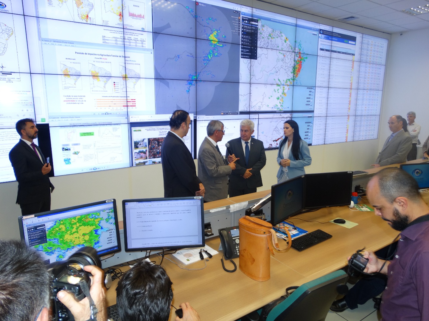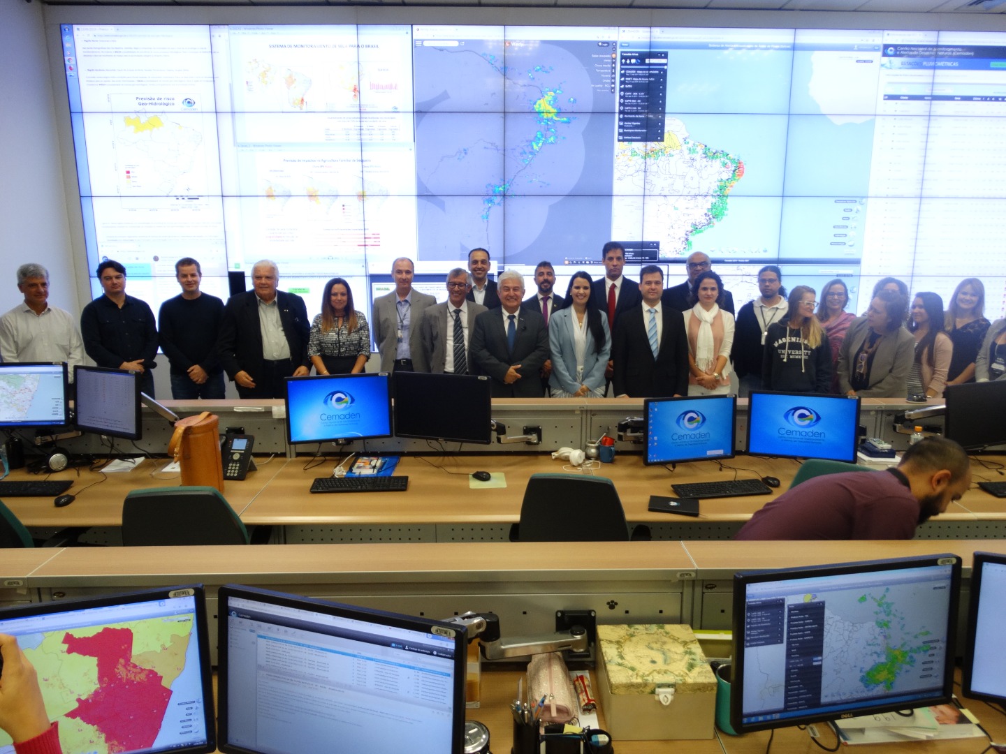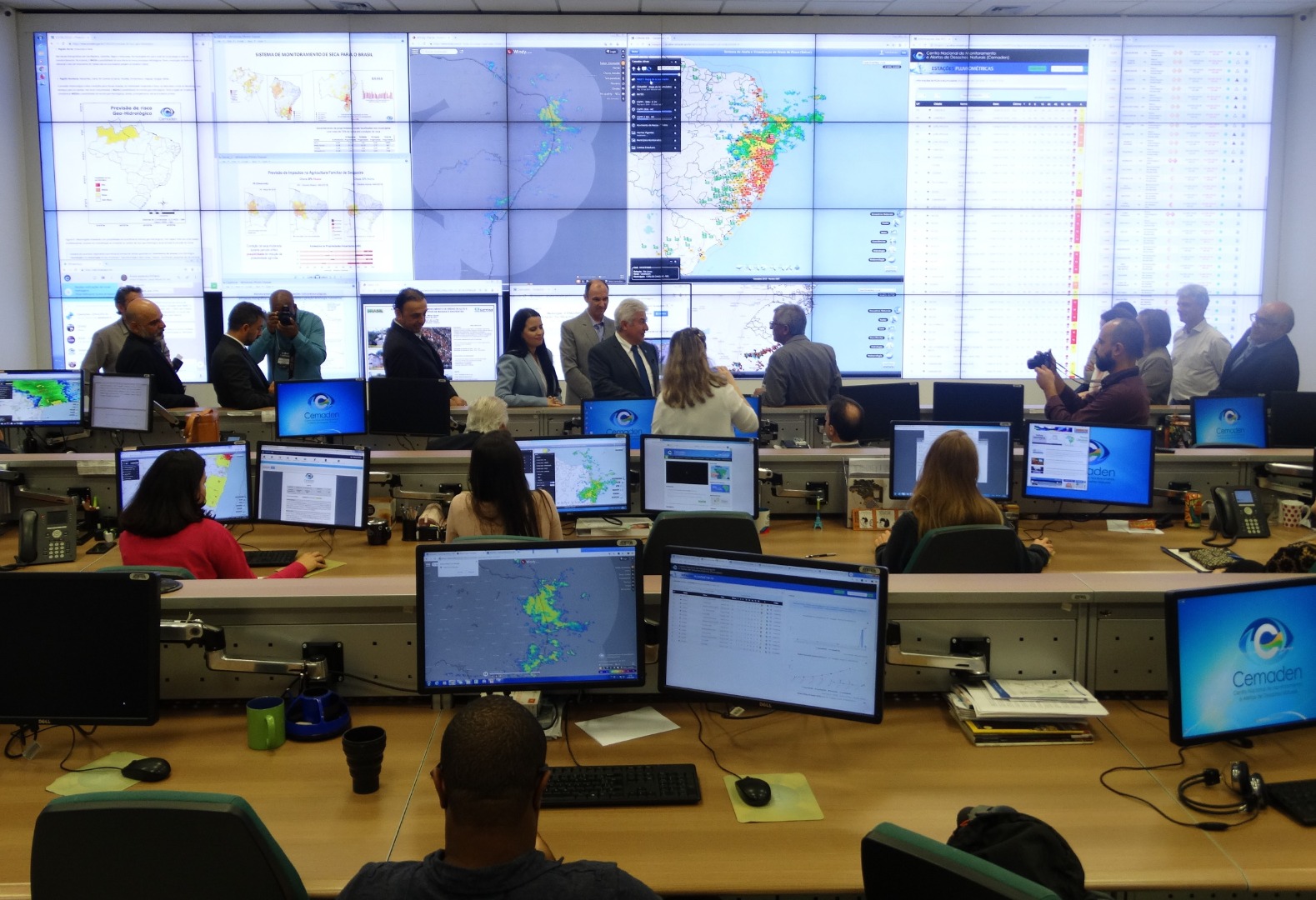 O diretor do Cemaden fez um resumo das atividades, destacando a equipe interdisciplinar com expertise, em diversas áreas, para o monitoramento e pesquisas em desastres naturais. O coordenador-geral de Operações e Modelagens, Marcelo Seluchi, apresentou o sistema de monitoramento das chuvas e de risco geo-hidrológico, bem como os tipos de alertas emitidos para risco de desastres. Mostrou, também, o monitoramento hidrológico dos reservatórios e das secas do semiárido, explicando sobre a elaboração de dados de projeções de impactos, os quais subsidiam diversos setores produtivos e ações intergovernamentais.