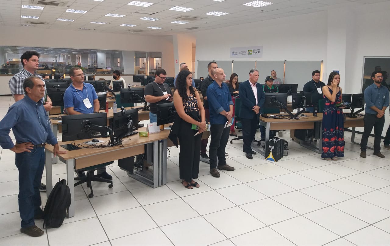 No final, a comitiva visitou a Sala de Situação do Cemaden, conhecendo o sistema de monitoramento dos municípios brasileiros mapeados com áreas de risco, a rede observacional e o processo de emissão de alertas de riscos de desastres geo-hidrológicos.