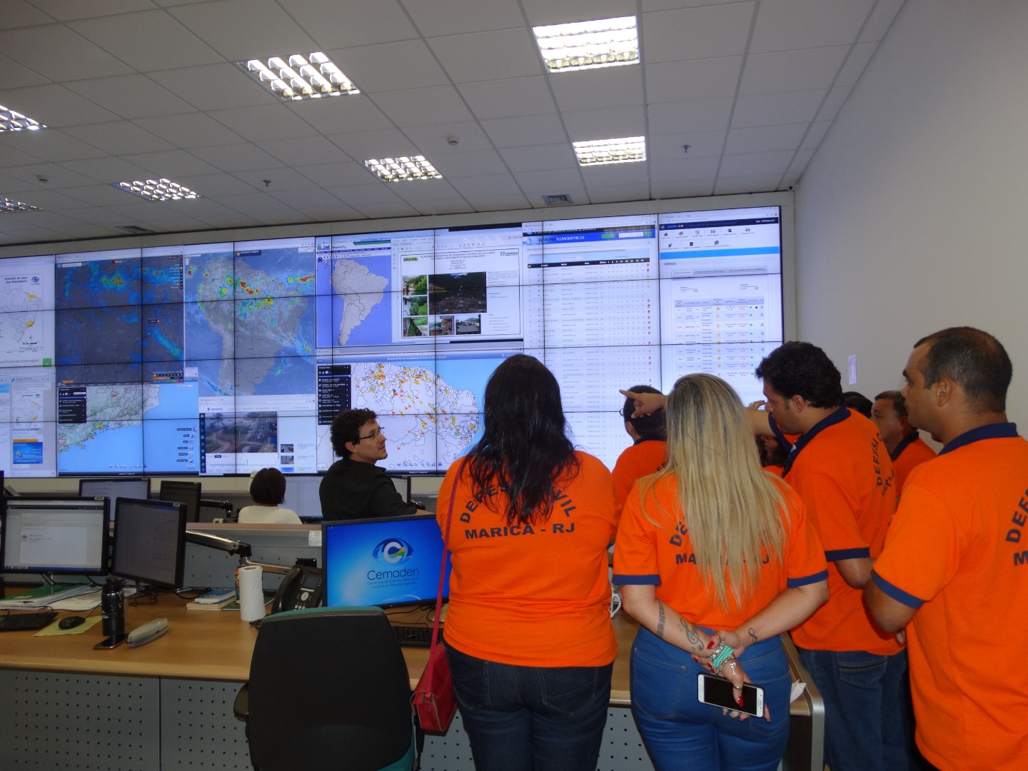 A comitiva da Defesa Civil do município de Maricá (RJ) – integrada por 19 profissionais de diversas áreas – fez uma visita técnica ao Centro Nacional de Monitoramento e Alertas de Desastres Naturais (Cemaden), em São José dos Campos (SP), nos dias 4 e 5 de abril, para ampliar o intercâmbio, apoio técnico e o relacionamento institucional. Recentemente, a Prefeitura de Maricá ampliou o corpo técnico da Defesa Civil Municipal, integrando especialistas da área de geologia, geodinâmica, hidrologia, meteorologia, engenharia civil e analista de sistema para a implantação do centro de monitoramento no município.